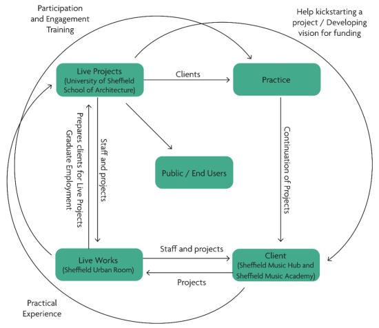 Participatory Practice: Analysing the Adoption of Resilient Community Engagement Methods in UK Architecture from the Perspectives and Experiences of Architectural Practice Part 2 Dissertation 2022 Kimberley Rebekah Pearce University of Reading | UK “Cities have the capability of providing something for everybody, only because, and only when, they are created by everybody.” (Jane Jacobs, 1961)The importance of social interactions and well-designed spaces have been exemplified throughout the COVID-19 pandemic. With many forced to adapt their daily routines, the pandemic has shown how poorly the built environment is able to respond to the changing needs of its users, yet simultaneously, how crucial it is. Resilience therefore will be a defining quality of the twenty-first century.Participatory architecture, which in its broadest sense is defined by parties other than the architect and design professionals being involved in the architectural process, can be seen as a method of introducing this necessary resilience. Through democratising how we plan our urban environments, cities can adapt to become places that are better designed, better built and better equipped to respond to a changing world. Moreover, it can add social value within communities, instilling a sense of belonging, ownership, and pride.However, although widely accepted as a crucial element in successful design and planning, community involvement and consultation within UK practice is poorly reflected in studio culture. Therefore, this study looks to learn from the experiences and perspectives of architectural practitioners and those actively involved in participatory processes. It asks why architectural culture has failed to adopt participation into general practise, and how, moving forward in the wake of the COVID-19 pandemic, the profession can reflect and adapt on the importance of such methods and what changes must be made. Tutor(s) Lorraine Farrelly