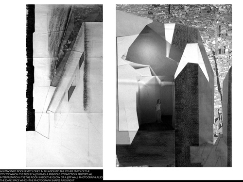 The year’s thesis develops from the notion of the Lucid Room, playing on the title of Barthes’ speculation on photography. This project understands lucidity through the intertwining of the physicality of light with the poetic potential of language. Narratives give scale to, and inhabit, evocative and abstracted images of space and form, lending them clarity and establishing specificity. These develop through a series of short studies, defining the spatial concerns and hierarchies of the Photographers Gallery. Here light appears to carve matter, forming luminous collective spaces between dark rectilinear galleries, which are resolved spatially and materially to achieve another lucidity.