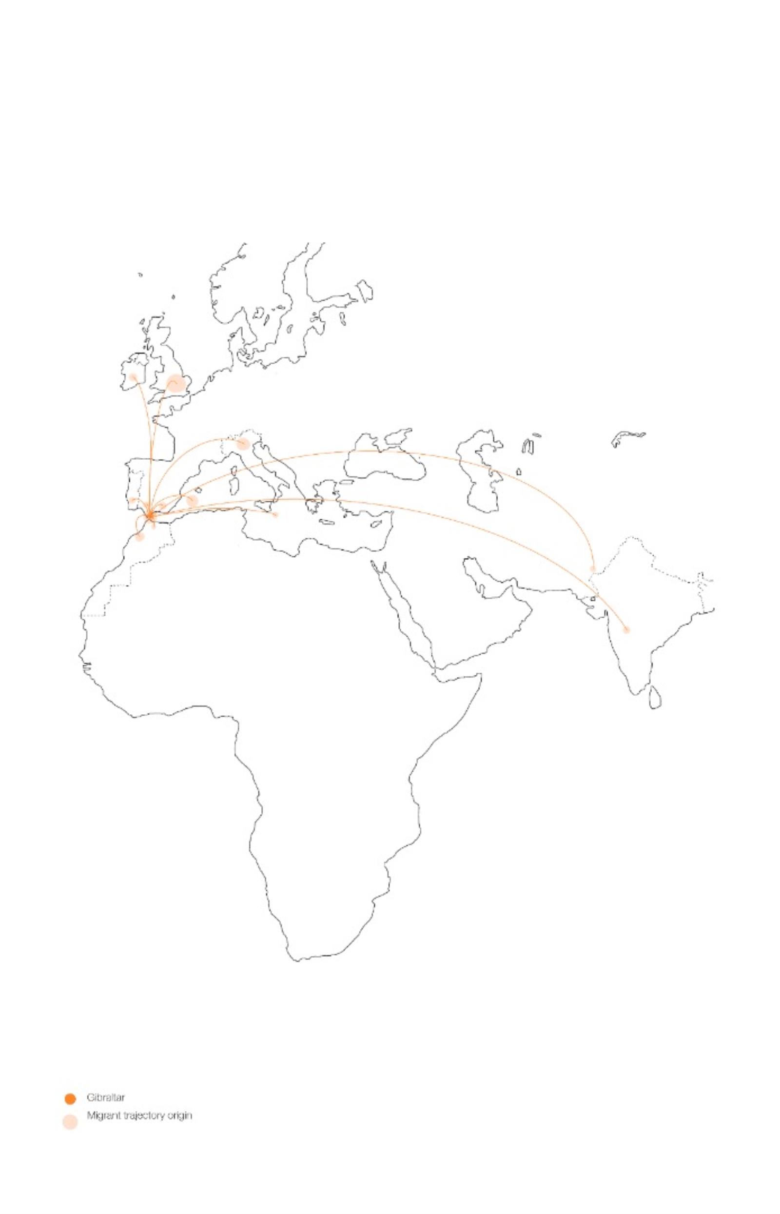 Irish Town, Gibraltar: Street expressions of migrant identities Part 2 Dissertation 2024 Mariam Pinto-Rodriguez Manchester School of Architecture | UK Irish Town Street in Gibraltar is defined by intertwined historical and geographical intricacies that stem from complex migrant trajectories. This dissertation examines these migrant flows through forms of representations expressed among spatial qualities on the central street of Irish Town, contributing to spatial studies within the context of Gibraltar. Postcolonial theories are adopted to understand how questions of belonging, identity, and power dynamics impact how migrants actively shape urban spaces and everyday practices and, as a result, influence the making of urban life profoundly. Following a scalar method, this research investigates concepts from a city-wide perspective, down to a street level, and finally towards an interior and object perspective, applying a visual ethnography to unravel these dialogues. Urban spatial displays speak to a complexity of migrant identities and reveal embedded hierarchies of cultural expressions, which range from British to Spanish, Moroccan, and South Asian. This dissertation seeks to untangle Gibraltar's complex historical and contemporary migrant-making processes by focusing on one particular street. The street shows us the interwoven dynamics of placemaking with waves of displacement, attempts at making a space of belonging, and finding ways of spatial coexistence towards a common ground. Tutor(s) Huda Tayob