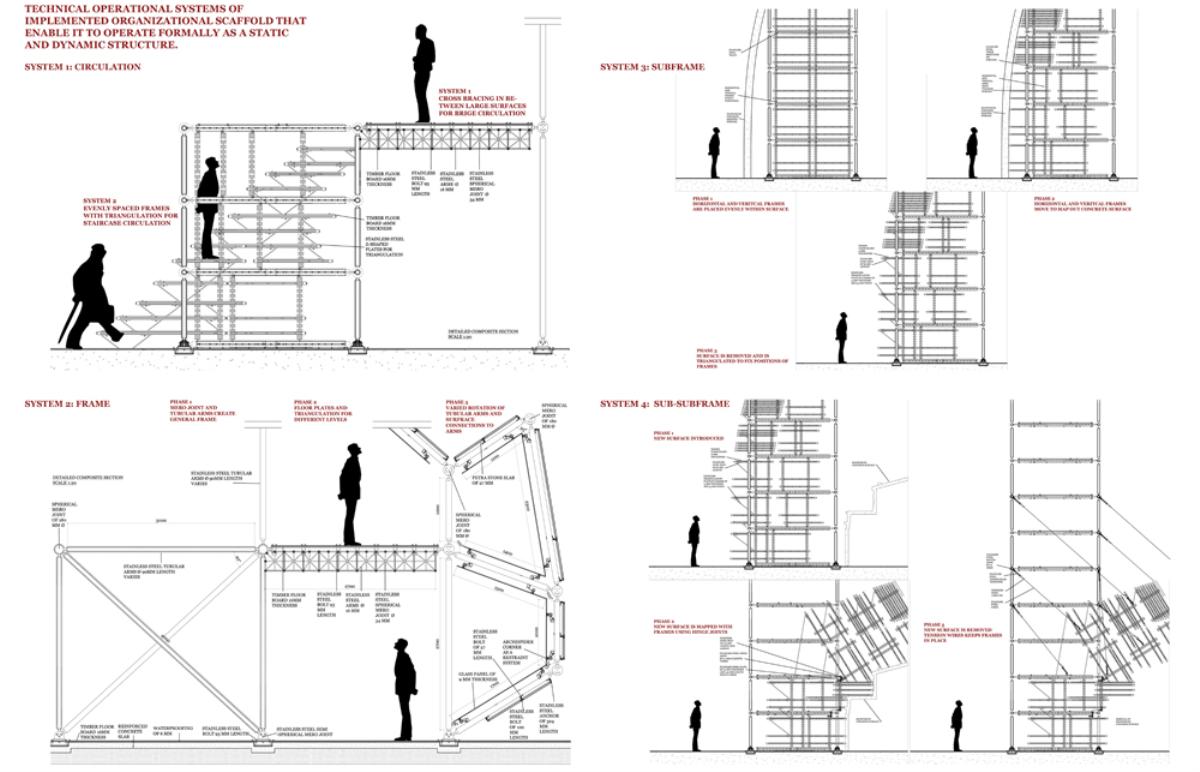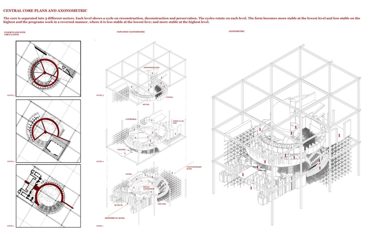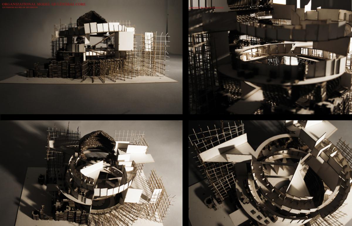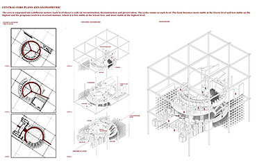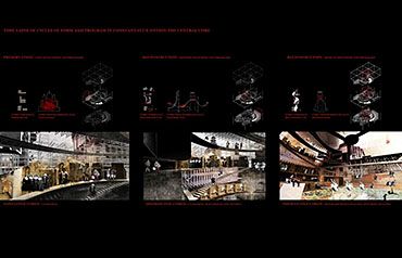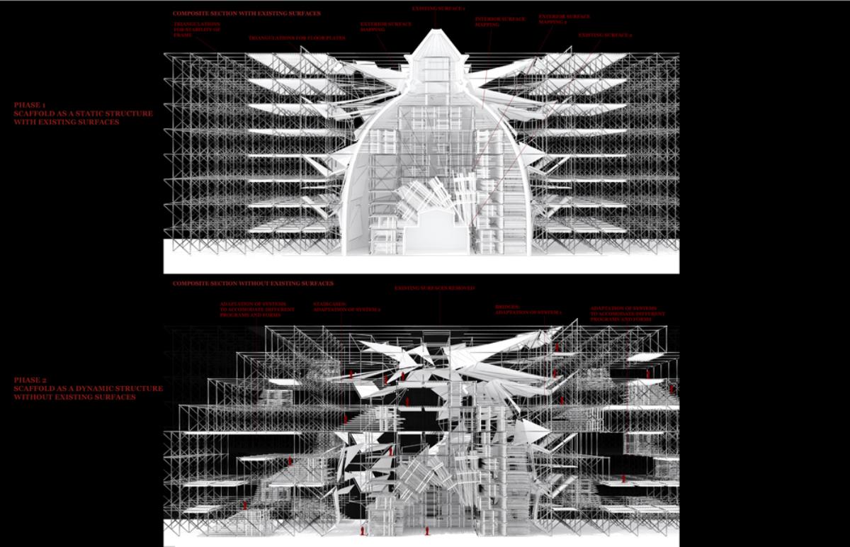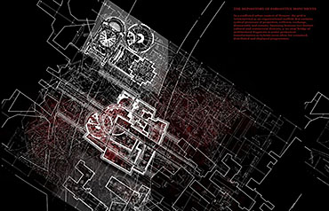 The Depository of Forgotten Monuments Part 1 Project 2012 Vidhya Pushpanathan Architectural Association London | UK In the effort to balance local identity with global influences, Moscow has been subject to simultaneous spurts of renewal and reversal. Paradoxically, continuous deconstruction and reconstruction define the city’s state as in-between preserved historical monuments and remakes vs. contemporary transplants and additions, blurring oppositions between original and fake, old and new, generic and specific. Such contradictory forces and processes are legible in layers of fragments and clusters of displaced programs and events. As part of the tension between cultural and commercial venues, both static landmark museums and dynamic commercial gallery enterprises call for new mediating design positions. Addressing Moscow’s paradox of deconstruction and reconstruction, the “Depository of Forgotten Monuments” puts forward a flexible architectural framework that takes into account conflicted urban processes, structures and programs. As both a curatorial strategy and an urban prototype, it defines a hybrid between cultural and commercial art sites and allows for the co-existence of past and future as part of the transient collection of architectural replicas, quotations, and mediations. The Depository expands the logic of the three-dimensional grid as an organizational scaffold that can support cyclical and incomplete processes of construction, collision, deconstruction, exchange, reconstruction, and so forth. The scaffolding system nurtures new symbiotic relationships between fragmented structures, spaces and programs, supporting provisional orders within a seemingly chaotic accumulation. Poised as a ‘no-stop’ bridge and time-link between two symptomatic palimpsest districts on either side of Moskva River – the resurrected complex of the Cathedral of Christ the Savior and the re-appropriated post-industrial Streylka Island – the Depository helps concentrate fragments sourced from dissimilar city periods and sites. The bridge matrix includes key ‘condenser’ cores that attract dissimilar formal sectors while supporting contained, distributed and displaced programmes. With both form and program in flux, the external blurred image of incomplete silhouettes and overlapping spatial grids is deliberately at odds with the internal daily events, seasonal festivals, visiting gallery installation and resident cultural institutions. The depository will slowly expand to eventually consume the city of Moscow in order to generate the process of urban renewal that Tutor(s) Maria Fedorchenko Tatiana von Preussen