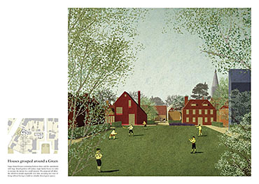 There are no monotonous rows of terraced facades - houses step forward and back, following sinuous streets. Dormers and chimneys enliven undulating roofs, which are arranged in amongst tree canopies creating picturesque views. All of this leads to a unique village-like atmosphere.