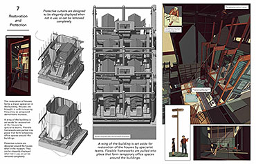 Alamo Square Park, on the edge of the cities proposed future wave of expansion, is recommissioned as a columbarium of restoration. Parkland above is preserved as restored grasslands whilst subterranean museum halls undergo a slow and unobtrusive construction process as houses proposed for demolition are saved from the growing city’s fringes.