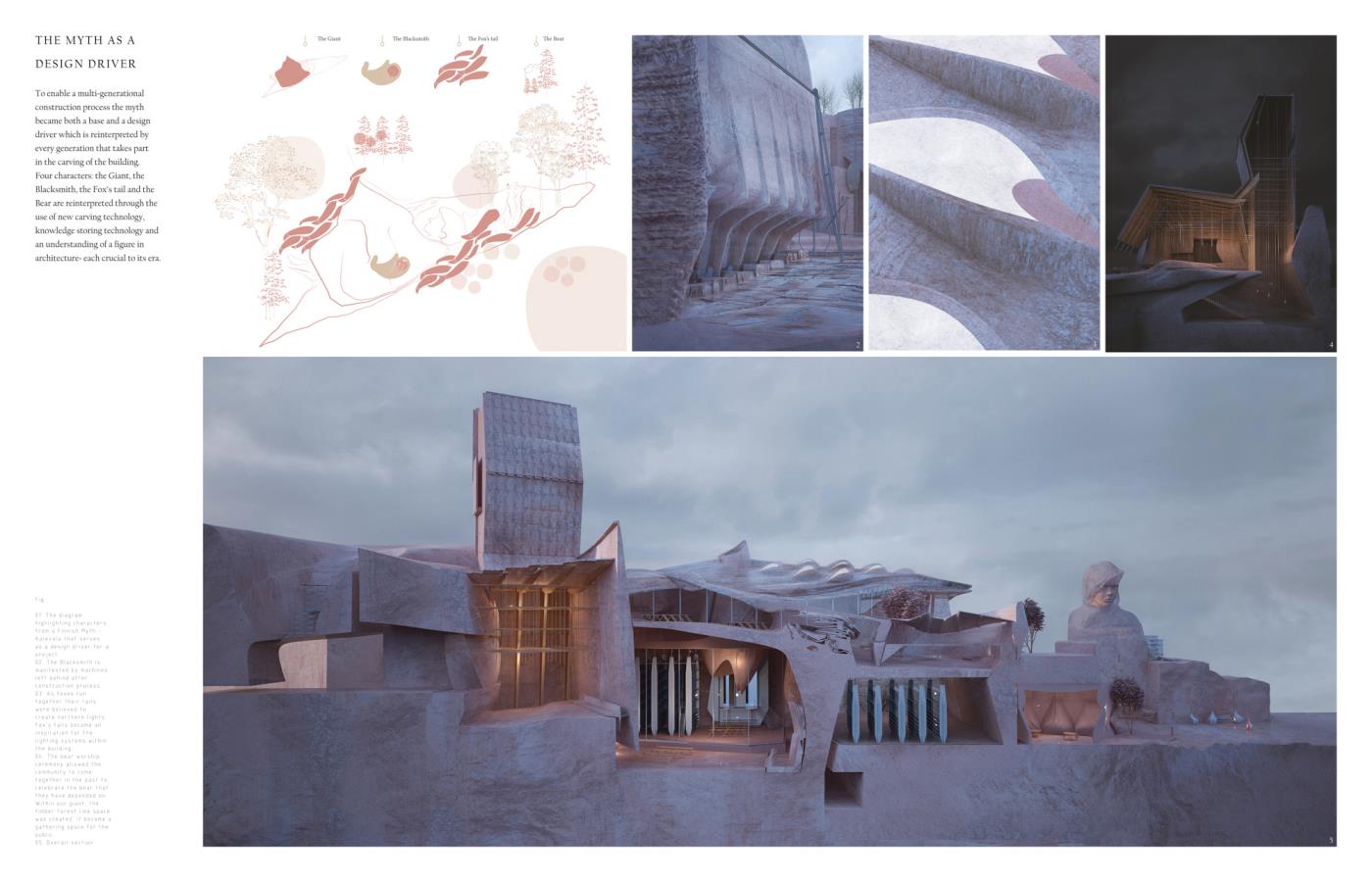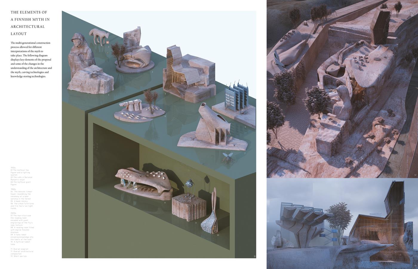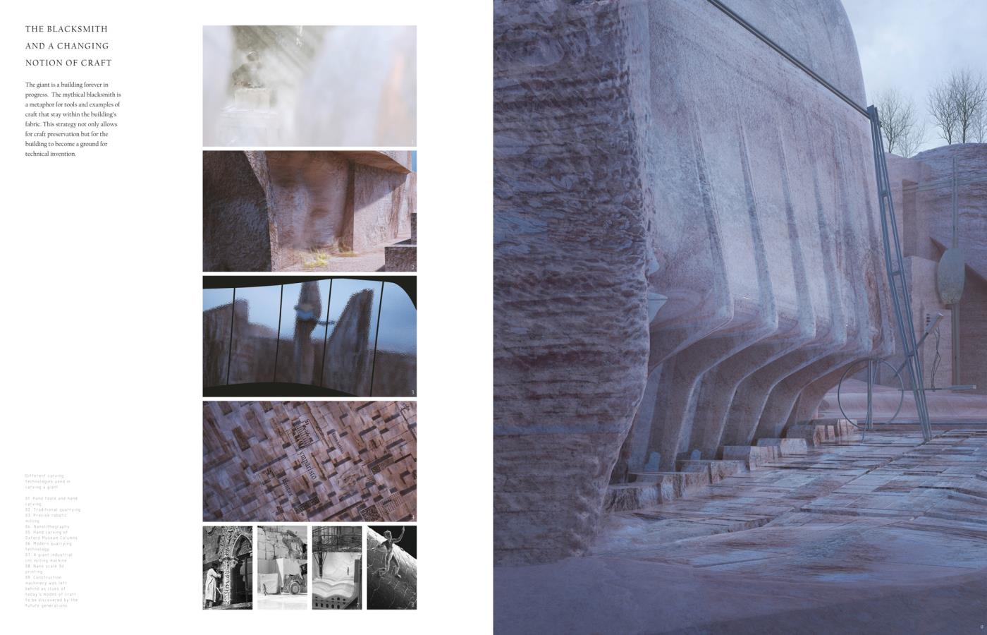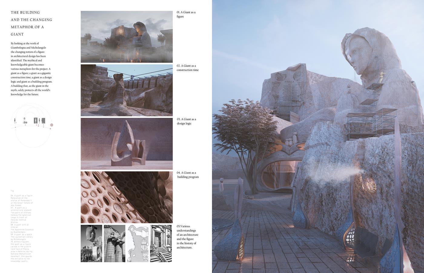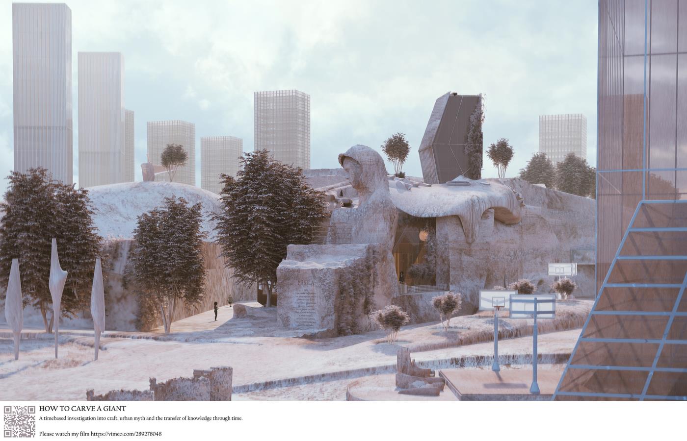 How to Carve a Giant Part 2 Project 2018 Sonia Magdziarz The Bartlett School of Architecture, UCL | UK ‘How to Carve a Giant’ proposes an architecture capable of keeping safe contemporary forms of knowledge, by carving a folk story into the rock underbelly of Helsinki, over long periods of time. Featuring extraordinary shifts in scale and time – composed through the use of digital film and research into cutting-edge stone carving technologies – the project proposes an innovative architectural language that pays tribute to the local tradition. Tutor(s)Dr Penelope Haralambidou Keiichi Matsuda Michael Tite