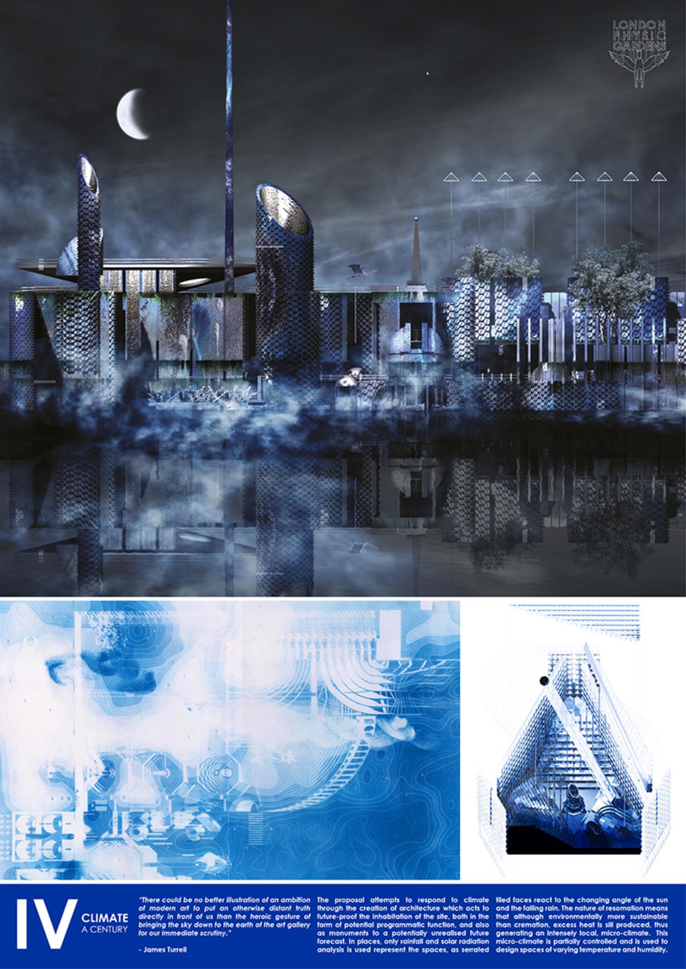 London Physic Gardens: A New Necropolis Part 2 Project 2018 Sam Coulton The Bartlett School of Architecture, UCL | UK Inspired by Derek Jarman and Yves Klein’s work the project is a proposal to introduce a resomation necropolis and physic garden; in which our relationship with death is readdressed through the implementation of a botanical garden on the site, fed by the nutrient rich effluent water generated through the process. This environmental method, in which bodies are converted into water, allows us to see death as something potentially beautiful. Tutor(s)Ms Elizabeth DowMr Jonathan Hill