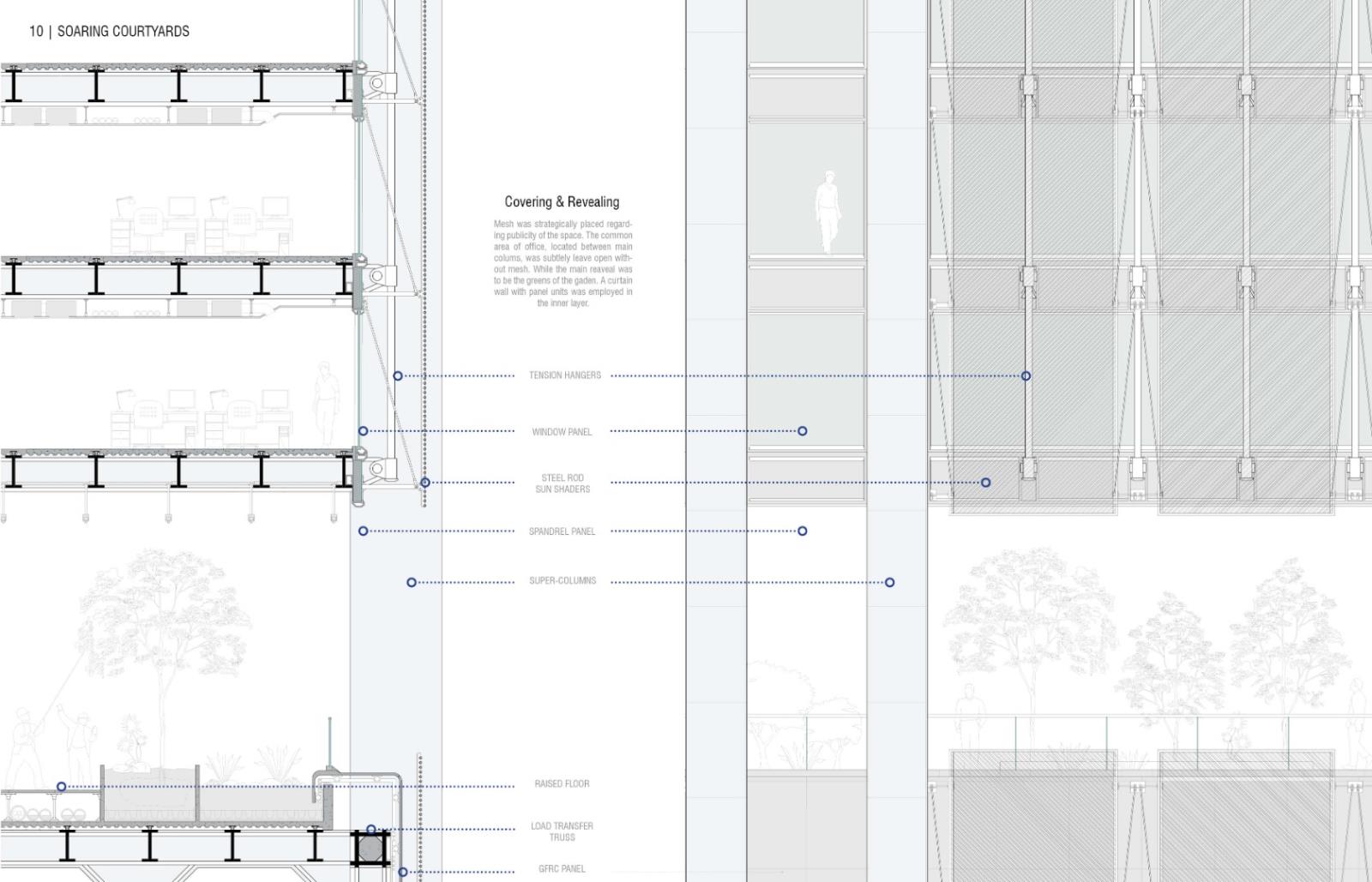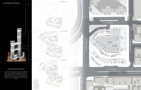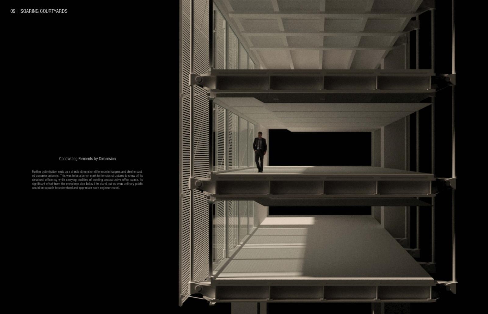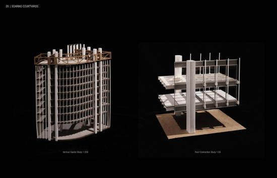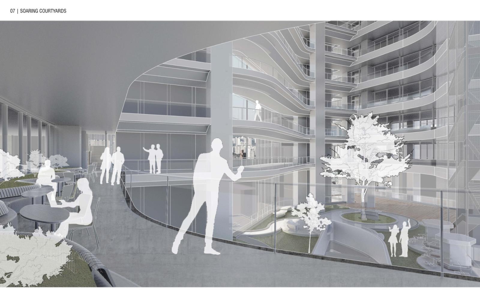 Soaring Courtyards Part 1 Project 2021 Ho Yuen Brian Wong Chinese University of Hong Kong | China Sandwiched between old industrial fabric of Ma Tau Chung and a Kai Tak New Town, The proposed office tower is situated at a context of rapid evolving. Given the contrasting nature of the two, Soaring courtyards adopts a extraordinary approach of crafting vertical working space with the operation of disintegrate and insert. Challenging the typical core packed towers, the project tries to split office, services and retail into several smaller entity with green space inserted between them . Porosity is created to facilitate user-surrounding connections as they inhabit and transverse various platforms of green inner community. Besides being green fitted, the space is crafted to be a enjoy quality of sun, wind and a framed view of the Kowloon mountains, attempting to offer a true delight and fresh breathe for workers high up the tower. Tutor(s) Cheng Chung Belinda Law