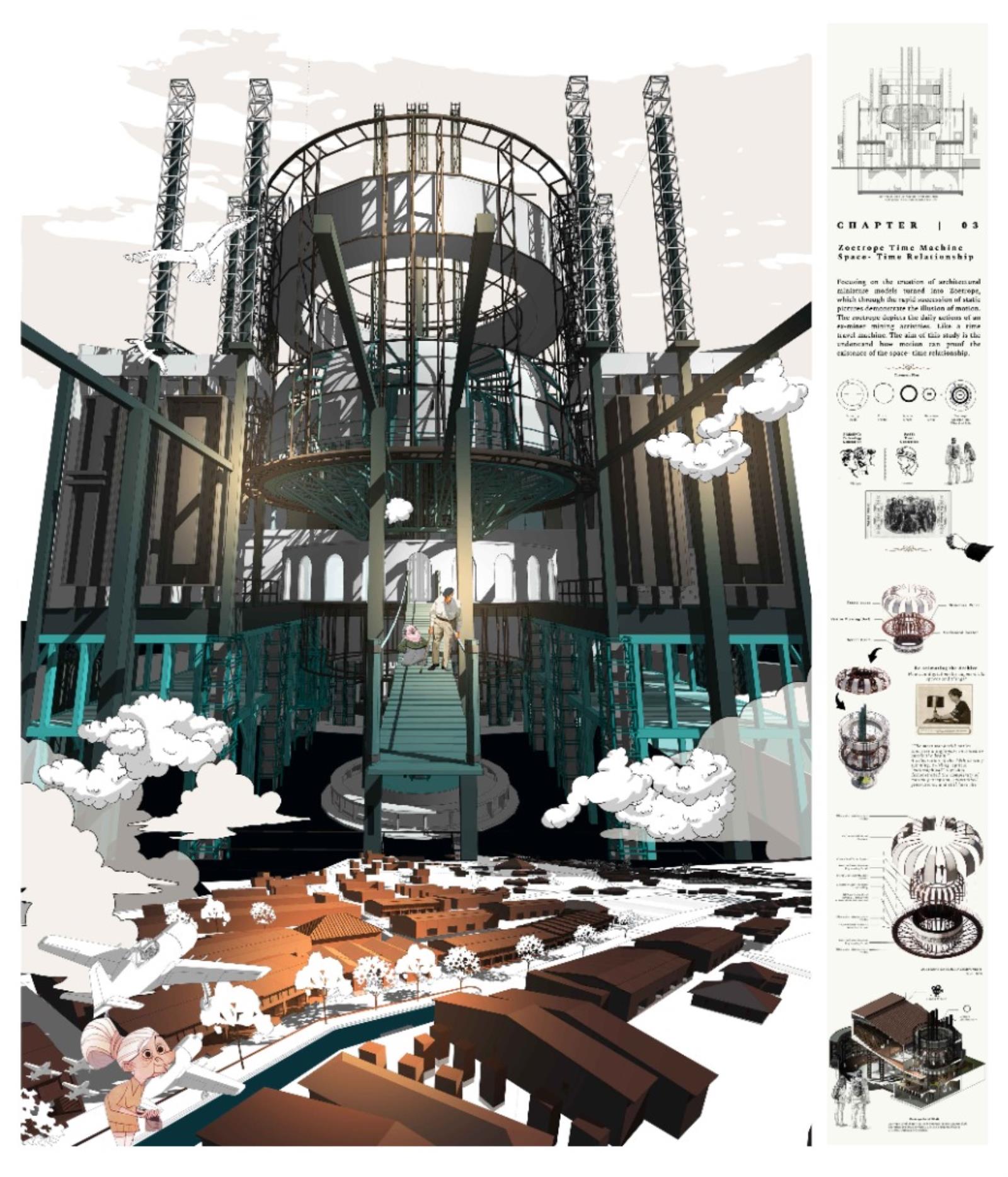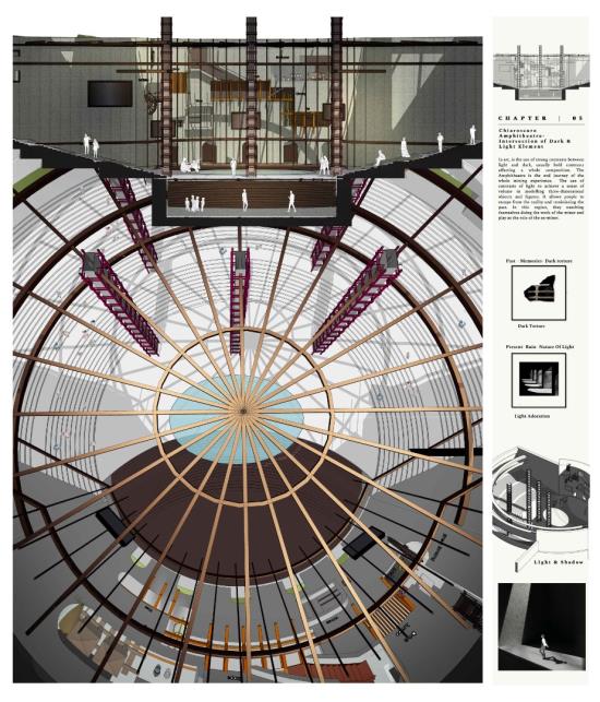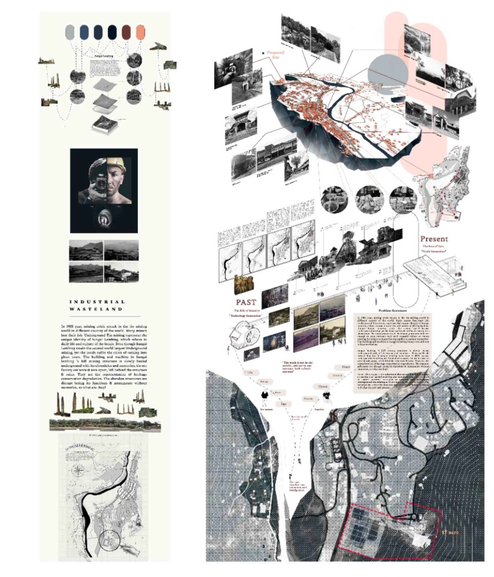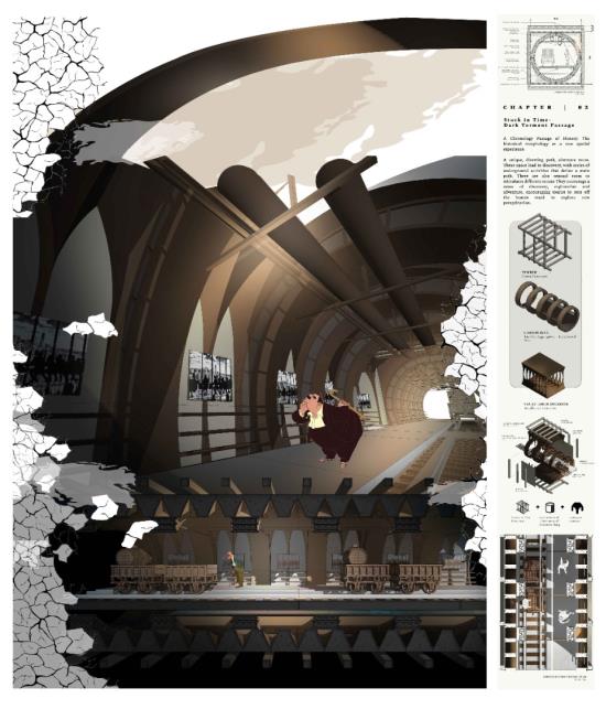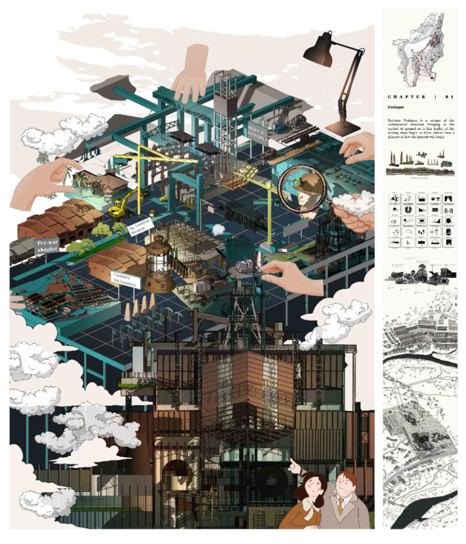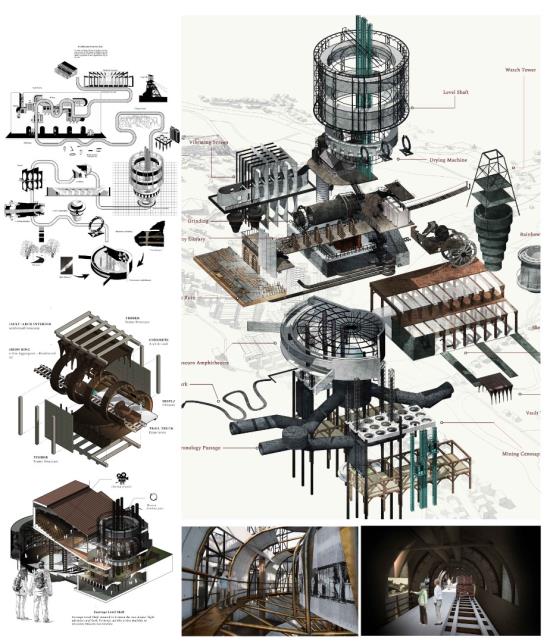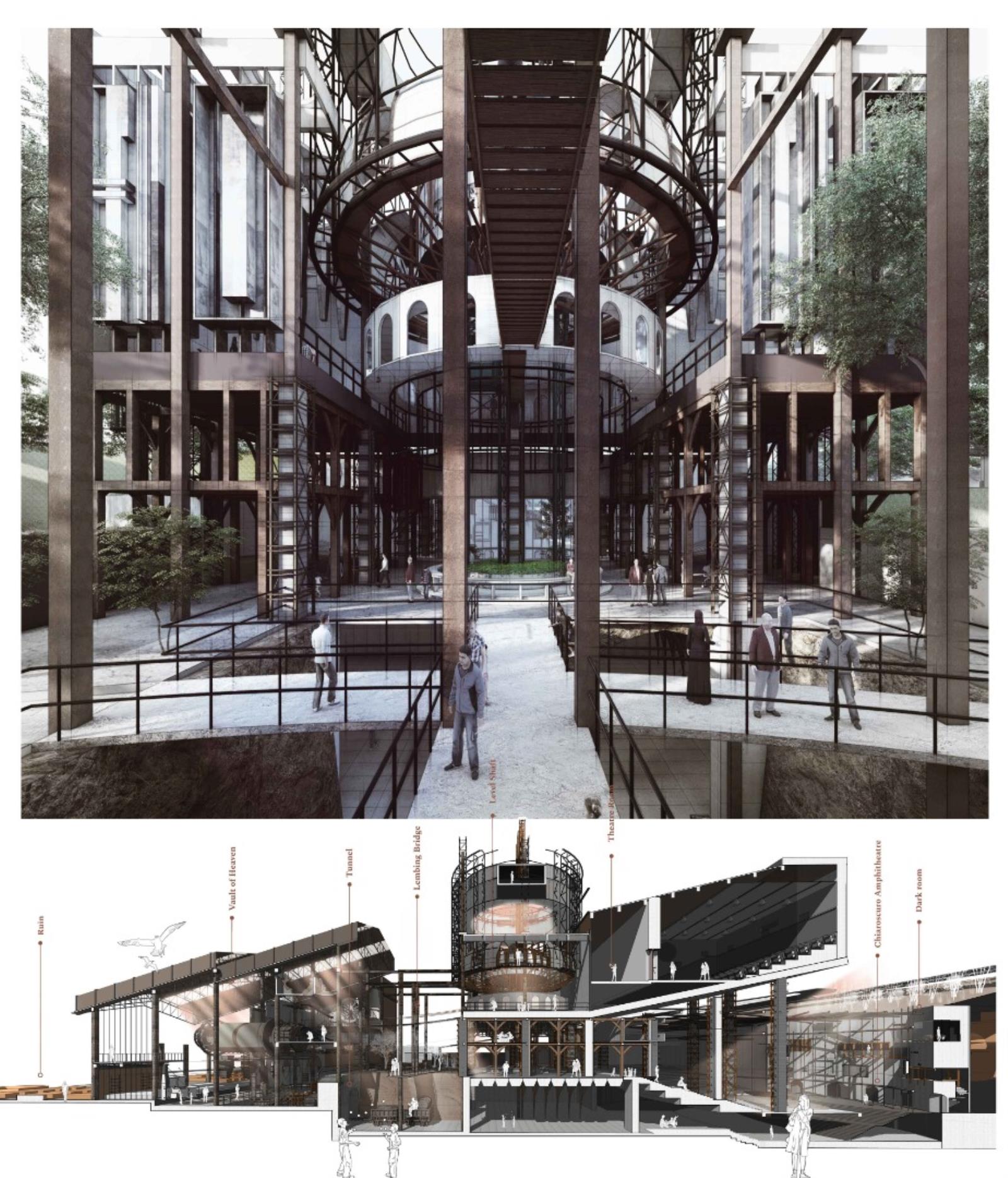 Archive of the Lost Mining City: Revival of Miner's Magnum Opus Part 2 Project 2021 Xue Yee Low University of Malaya | Malaysia In 1985-year, mining crisis struck in the tin mining world. Even though Sungai Lembing retain the second world largest Underground mining, yet the locals suffer the crisis of turning into ghost town. The building and machine in Sungai lembing‘s hill mining structure is slowly buried underground with its chronicles and memories. Hence, this project is to understand the nature of urban artefacts as products of spatial ordering and morphological and attempts to explore possible strategies to preserve and reinterpret underground tin mining as Contemporary Discovery in Sungai Lembing to bridge the past and present. Story Timeline divide into 5 chapters: Chapter 1: Skeleton PrologueChapter 2: Dark Torment Chronology PassageChapter 3: Zoetrope Time MachineChapter 4: Light AdorationChapter 5: Chiaroscuro Amphitheatre (Intersection of Dark & Light Element). The thesis proposes a manifestation of the two dimensions of time as both technology generation and trash generation intersecting: Dark torment (Past) and light adoration (Present), where Zoetrope act media to amalgamate the both timelines. The proposed Tin mining experience centre is shape up and cog nominate into components. It is not a hierarchical architectural experience, but a sequence of urban artefacts littered throughout the terrain, inhabiting idiosyncratic exhibitions of memory in a new geography of curiosity. Tutor(s) Zuraina Leily Awailudin Nik Rahiman Nik Mohd Taib