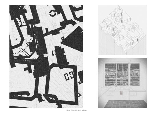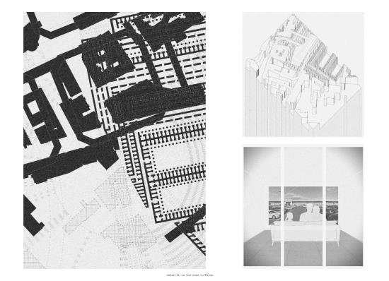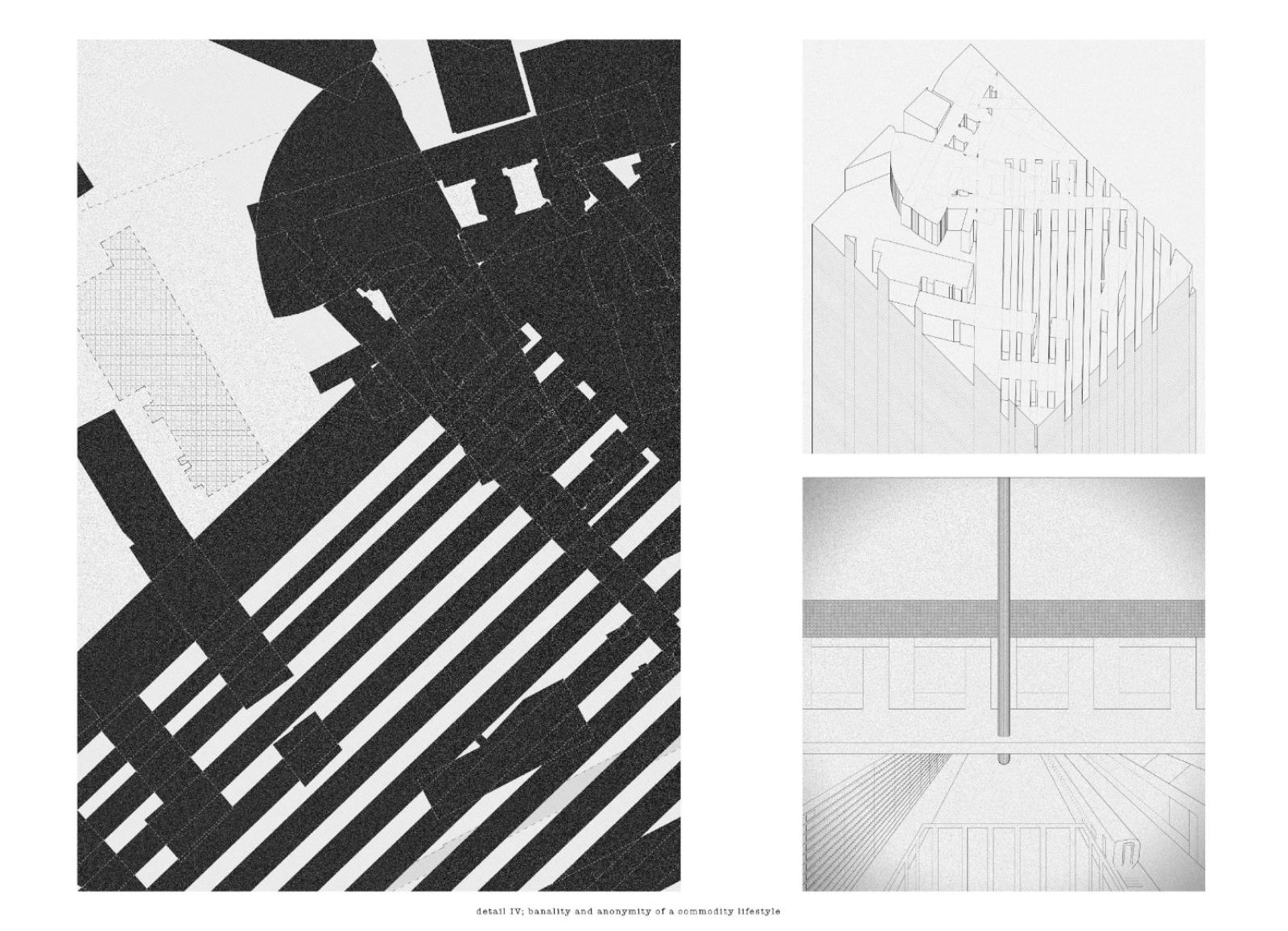 A City Without Objects Part 2 Project 2022 Kamen Hristov Rusev University of Dundee | UK Our cities are increasingly characterised by careless expansion and wasteful development. They are compartmentalised by infrastructure and interconnected by the car and hence negate collective life. The basic datums of this city are buildings, space and circulation.Against this scenario, this project reimagines a future Dundee as a hyper-dense city of overlapping figures where objects, such as they exist, do not have the binary logic of figure-ground. In this project, the city fabric is defined by desire and by the way desire puts our relation to architectural objects in motion. The project defines the city in terms of overlapping narratives instead of categories of use.In order to present a city beyond the context of commodity capitalism that has been so destructive of our environment, the work brings together: analogical urbanism - the field of analogous objects; commodity capitalism - fixation on objects as commodities; environmental destruction - accelerated by commodity capitalism; dreams and the unconscious - the field of displaced and condensed objects.Condensation and displacement describe how the elements of a dream are combined and transformed during what Freud calls 'dream work'. The work of dreams offers a radically different account of object-formation than commodification. Tutor(s) Lorens Holm