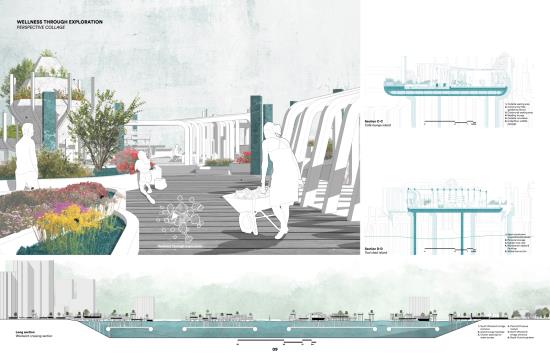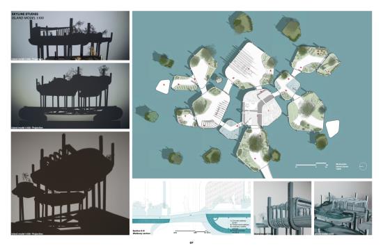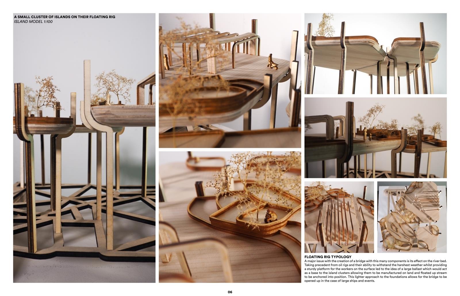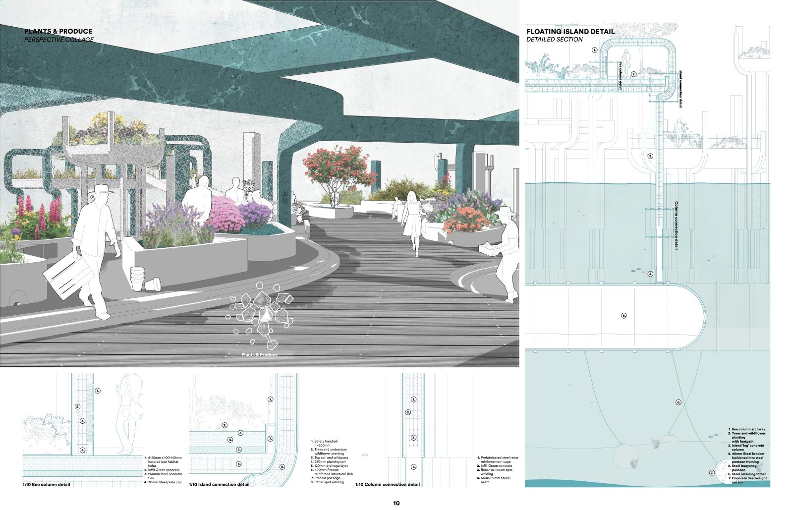 Fragmented Gardens: A Re-imagination of the Urban 'Greenspace' Part 2 Project 2022 Ethan Joseph Burley University for the Creative Arts | UK The term green space describes an area of vegetation in an otherwise urban environment reserved for recreational or aesthetic purposes. Unfortunately, in the case of current major cities such as London this leads more to the latter as urban greenspaces are designed using types of flora and vegetation meant to be low maintenance to fill ‘void’ spaces in order to break up the city blocks and unusable plots of land. This leads to declines in wildlife diversity which require the wild flowers to survive. Additionally, the overly dense urban landscape results in very little recreational space for many of its residents with many not ever owning a garden. This leads to the development of multiple mental disorders among the urban dwellers.Situated in Woolwich, London, The Fragmented Gardens aim to use the banks of the Woolwich area to form a hub for the reintegration of the local wildlife back into the urban area. The project is made up of a multitude of floating islands creating plots of land for diagnosed residents using gardening as a tool of rejuvenation and wellbeing. The community garden then forms the foundations for the revival of the wildlife through pollinators and flora. Tutor(s) Adam Hiles Carla Novak