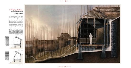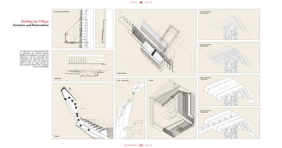 Cofio Celyn: Remember Celyn Part 1 Project 2023 Gus Eynon Richards University of Greenwich | UK In 1965 the proud Welsh village of Capel Celyn, now ruined and vacated by its community, was veiled in water to build a reservoir for Liverpool. The Drowning of Tryweryn is a key point in Welsh history and sparked considerable yet ignored protests. Now, ‘Cofio Celyn’ is rarely seen and the village begins to be forgotten again; this project seeks to reverse that and provide a new architecture to remember Celyn.The architecture aims to restore the community and close bond of Welshness that were lost in 1965. By using materials sourced from the site itself in a sustainable way, all are invited to rebuild a new village above the water line. Here, the new community works with the landscape which both offers resources and causes decay; the architecture is constantly being renewed as its environment warps and changes it. Different spatial experiences arise through different conditions of decay, repaired in a designed patchwork by all. Through this process, the community learns traditional skills, promoting a lost Welsh vernacular, and grows together as a community. As the new Capel Celyn is rebuilt and renewed so is a new community, all looking towards the memory of the village below the water. Tutor(s) Jen Wan Eric Wong