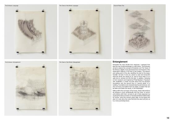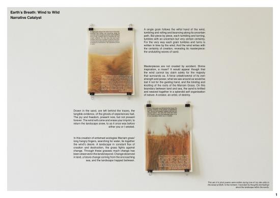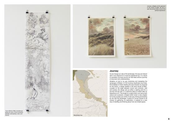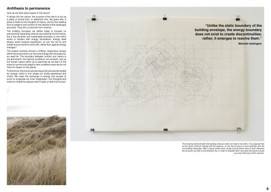 Narrative and humans share a unique connection: a form of symbiosis where narratives form our life experiences whilst simultaneously creating a new narrative which others may follow in the future. A constant tale of renewal and reflection, “the narrative process is inseparable from the story product” (Lewis, 2011). Exploring the narrative between humans and the breath of earth, wind, the project aims to understand and express the how it affects the way we perceive landscapes, how it creates the landscapes and us, and finally how it influences the way we respond to and inhabit the skin of the breathing earth. As creatures looking for shelter, how might an architecture in the future be different to accommodate both ourselves, and natural forces? The narrative arc explores an ever-advancing Anthropocene where society appreciates the fact that the human and the wild cannot be partitioned; wind and wild are forces to be embraced.