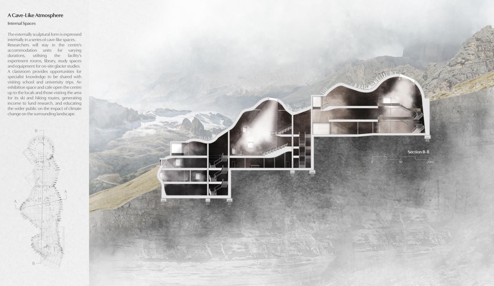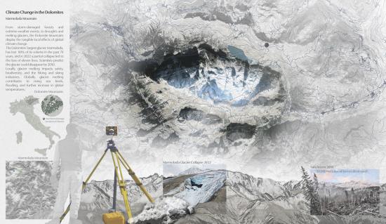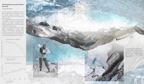 The Dolomite Mountains provide one of the most clear examples of the tangible effects of climate change, evident in rapidly melting glaciers and increasingly frequent extreme weather events. The proposal establishes a new climate monitoring centre, providing a facility for scientists to research the local and global effects of the climate crisis.