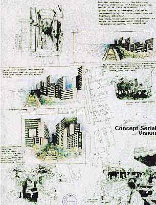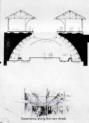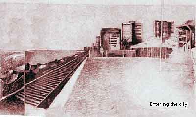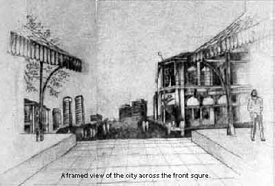 Milinda's approach to the task was extremely broad. His celebration of the public realm was on a much larger scale than the immediate neighbourhood. In fact he extended it into the experience of train travel itself; the visual and sensual adventure of arriving by train in the city centre became his focal concept. His approach to context was through a time-based understanding of urban fabric which formed a conceptual framework for a strongly contemporary statement within a historic fabric. In the final analysis Milinda's response broadened the given assignment into an extremely wide and complex task.