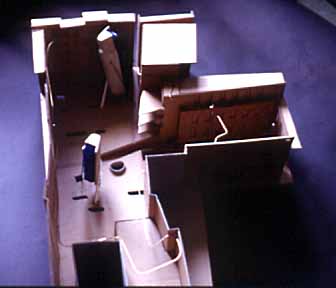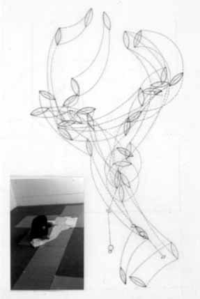 The issues raised by this exploration were condensed in an assemblage. The elements of this assemblage were a folded piece, the strategy for its occupation of space and aperson that performed this 'score'.