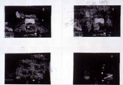 As in the assemblage there was a set of instructions, a folded piece and an interpreter, in the building project there is a space of projection, a projection and an audience.
