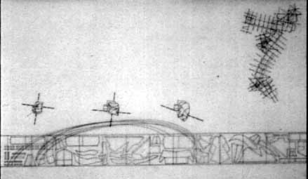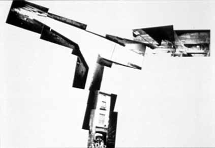 The perception of this space is gradual, as in a sequence shot, the appropriation of space is successive and often partial. Buildings become textural, their totality perceived as an additive sequence. When a change of scale widens the field of vision, like a cut to a long shot, the first facade appears momentarily only to resume the procession of sequential fragments.