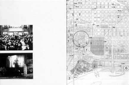 The perception of this space is gradual, as in a sequence shot, the appropriation of space is successive and often partial. Buildings become textural, their totality perceived as an additive sequence. When a change of scale widens the field of vision, like a cut to a long shot, the first façade appears momentarily only to resume the procession of sequential fragments.