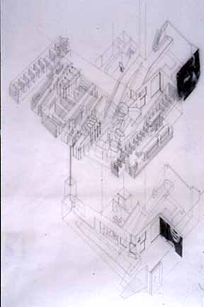 The archives are organised as a series of blocks, in an analogy with knowledge consisting of strata of enunciation's. This organisation tackles the functional as well as the structural necessities of the archive. At the articulations of these blocks, the skylights serve as markings of the functional changes.