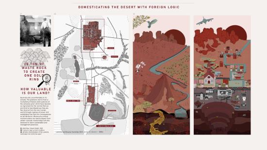 Aboriginals developed sustainable land management practices over sixty-thousand years, yet they have been silenced. This wisdom is invaluable. The project excavates suppressed indigenous knowledge to reimagine desert living based on local resources, remediation, and co-existence.