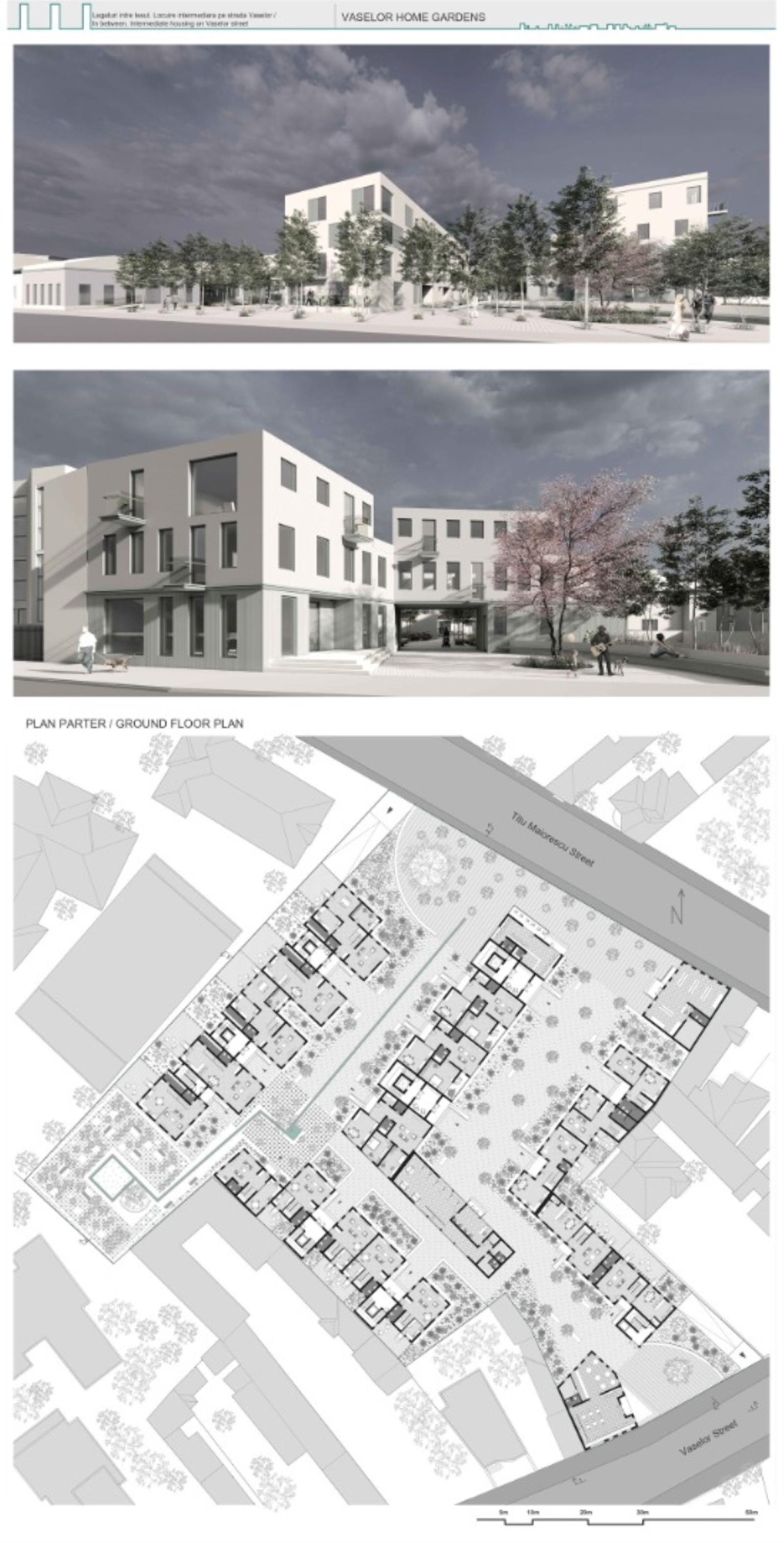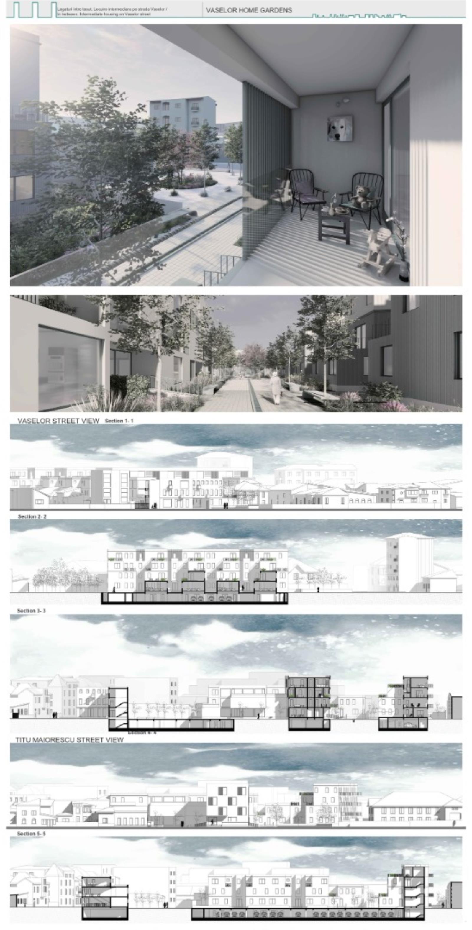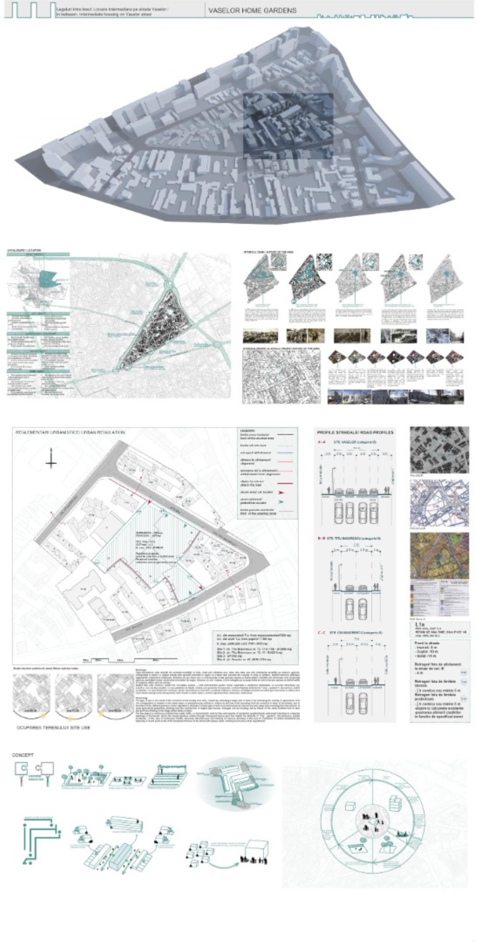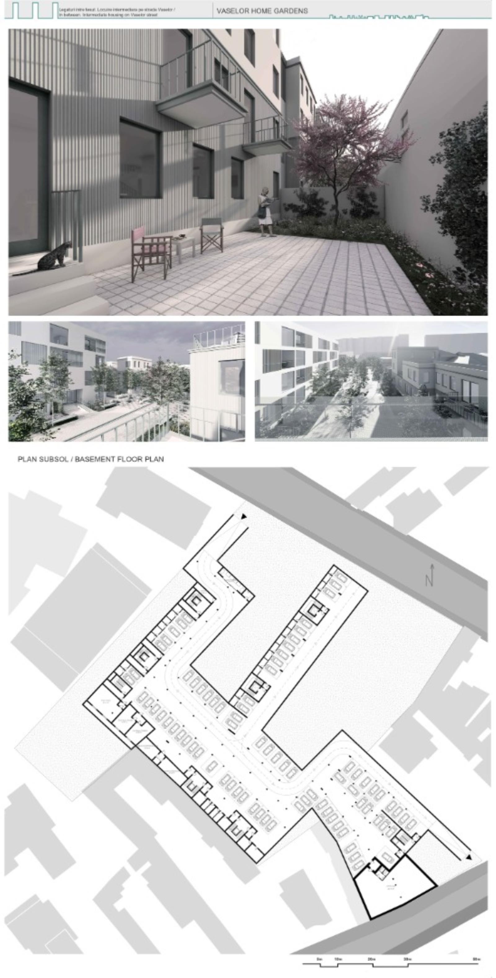In Between. Intermediate Housing on Vaselor Street, Bucharest (Vaselor Home Gardens) Part 2 Project 2022 Sandra Octavia Simon Ion Mincu University of Architecture and Urbanism | Romania The old Bucharest dwelling is still present at city level and offers playful and picturesque spaces that remind of the character of the garden city or of the old typologies of dwelling applicable even today. The architecture of these types of housing is presented today as a space of contrasts, which once traversed, transposes you into different historical periods, of glory or failure of the development of the city. The legacy is still present but hidden behind indifference. Its remembrance has led to searches in terms of housing, searches that do not destroy, do not eclipse, do not damage but integrate, flatter and solve a number of problems that the city faces in terms of housing.The main research question was How can the typology of home living with the garden be taken into account in the context of the need to densify the city?The project proposes a recovery of the island's identity and filling the gap in the site with a typology of housing specific to the area, namely “living in a common yard”. This typology converted to an intermediate habitat of individual and collective dwelling but to preserve the identity of the typologies of dwelling encountered in the area such as the mews, the dwelling in the mirror, the common yard; both single-family homes and apartment buildings. Tutor(s) Andra Panait