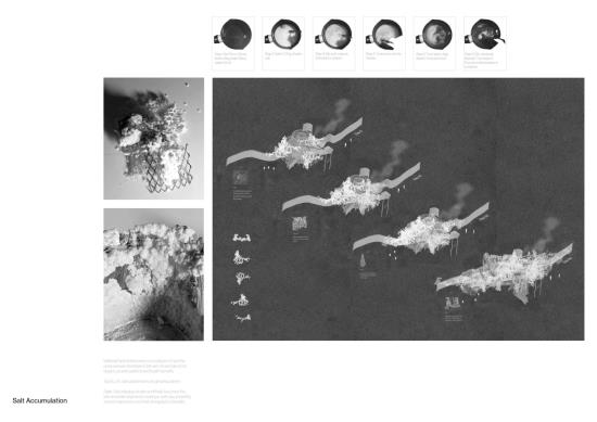 Historically, European Spa Towns require a combination of natural resources, urban elements and facilities to be recognised as spa towns. This project is about rethinking the concept of a ‘spa town’ as a manufactured one through sensory displacement as a critical component. The way we relax has changed with the intrusion of the internet and mobile phones. The internet acts as a sensorial displacement as we use digital devices to relax digitally rather than physically. This proposal questions how a spa can be considered a cultural building in the context of a technological age. The sensory encounters are represented through spatial and bodily experiences using salt and sound - challenging the spa's sensory and infrastructural aspects. The participant is introduced to an environment where the senses are pushed and pulled in a non-habitual way. All these programmes contribute to create a manufactured spa town which can be a model beyond Melton Mowbray.