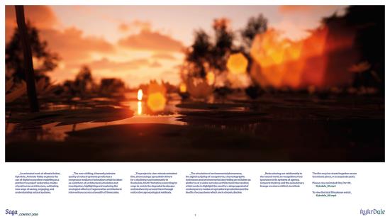 Kykrdale_Animate Valley Part 2 Project 2022 Elfed Alexander Samuel Royal College of Art | UK An animated work of climate fiction, Kykrdale_Animate Valley explores the use of digital ecosystem modelling as a platform to project restorative modes of posthuman architecture, cultivating new ways of seeing, engaging, and understanding natural systems.The ever-shifting, inherently animate quality of natural systems predicates a congruous medium of animation; which is taken as a platform of architectural simulation and investigation, highlighting and exploring the ecological effects of regenerative architectural interventions across a breadth of timescales.The project is a ten-minute animated film, showcasing a speculative future for a declining rural community in Swaledale, North Yorkshire; searching for ways to enrich the degraded landscape and biodiversity around them through restorative agroecological methods.The simulation of environmental phenomena, the digital scripting of natural environments, cinematographic techniques and environmental storytelling are all taken as platforms of a wider narrative architectural intervention; which seeks to highlight the need for a deep appraisal of human modes of agricultural production and the health of ecosystems which are in rampant decline.Restructuring our relationship to the natural world, in recognition of our ignorance to its systems of agency, temporal rhythms and the evolutionary lineage we share within it, is critical. Tutor(s) Thomas Greenall Nicola Koller Matteo Mastrandrea