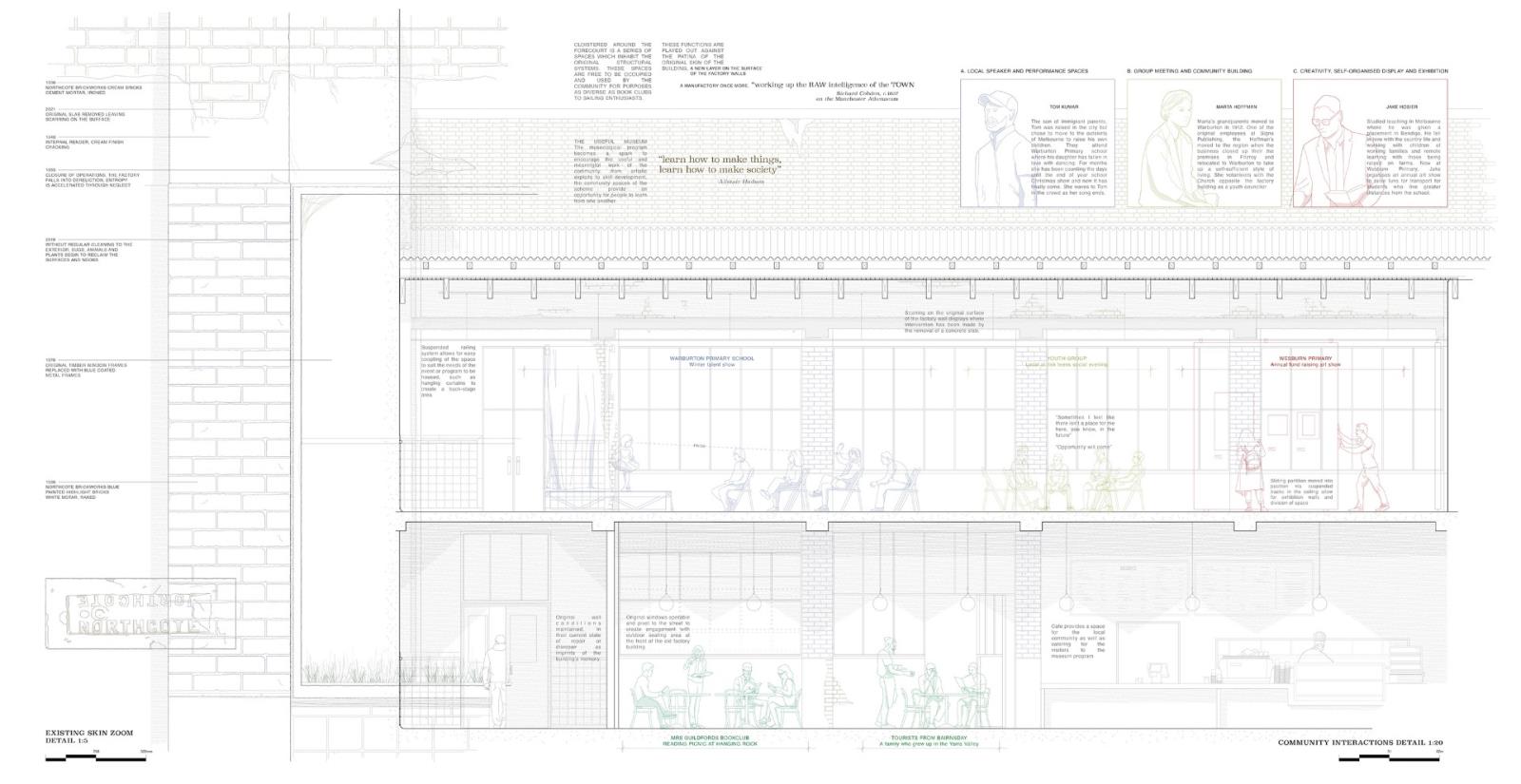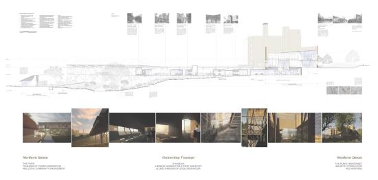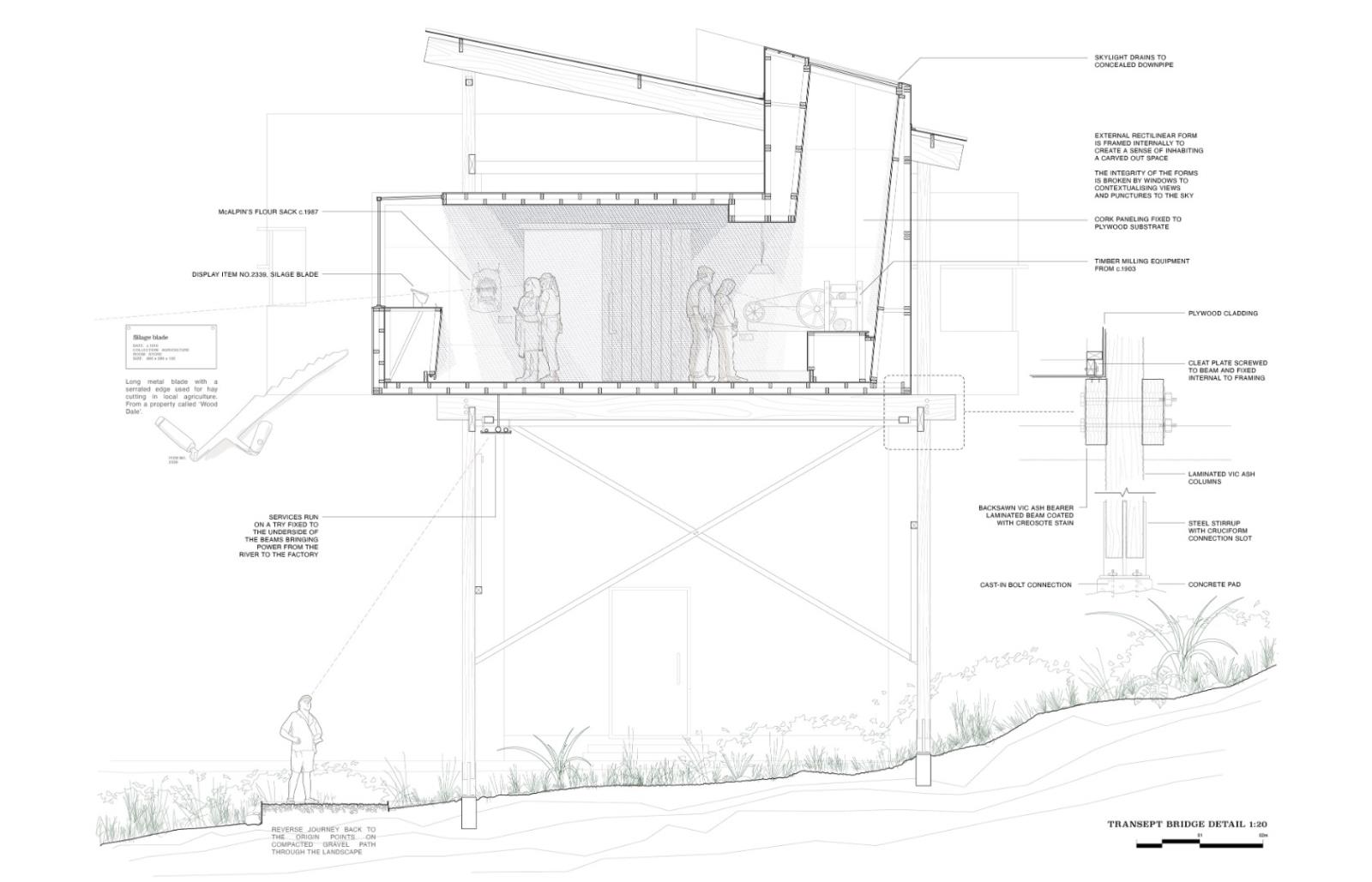 Through an experiential sequencing of spaces, exhibits and contextualising views, the scheme seeks to make sense of and re-collect past traces of industry, settlement, water and power — edifices of a rural identity considered at the scale of the wider ecology, the town, the plot and the brick.