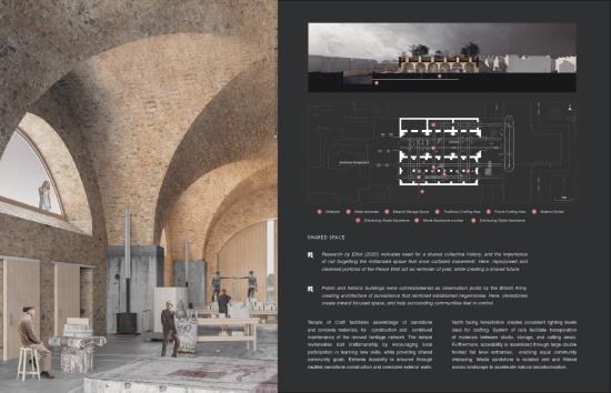 Closing the Global Heritage Deficit Part 2 Project 2022 Matthew Graham Queen's University Belfast | UK Closing the Global Heritage Deficit, we are preserving less today than ever before, is a critique of our inability to take full advantage of the existing built environment, and our unwillingness to ensure that what we build is resilient and enduring. Accelerating global urbanisation threatens what we attempt to preserve through bodies such as UNESCO, and is occurring parallel to static heritage generation at regional and global levels. These trends are only worsened by loss of built heritage within past and present conflict zones from Belfast to Mariupol. This design research thesis frames a proposal that equalises the heritage deficit, analysing global trends to propose recapturing latent and lost heritage in Belfast’s Falls Shankill interface area, facilitating reunification of two districts through introducing resilient, shared, integrated space and architectural form. The target to remove all Peacelines by the end of 2022, set out by Stormont’s ‘Building a United Community Strategy’ (2013) is significantly expedited. In the current context of political silence, it is vital that we develop voice and architectural form for sustainable and integrated communities. This proposal addresses peace building, multiple UN Sustainable Development goals, the decarbonisation of architecture and articulates sustainable methods to Close the Global Heritage Deficit. Tutor(s) Laura Coucill Tom Jefferies