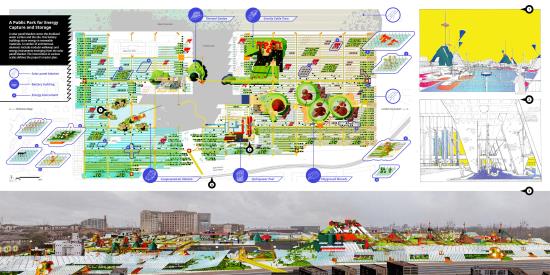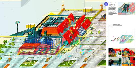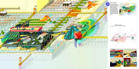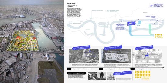 The project reimagines Silvertown Quays, a site noted for its history of technological innovation, as a scientific testing ground situated within a public parkscape. In response to its physical, cultural, and political context, Silvertown Battery Park is imagined as an off-grid energy infrastructure that could also provide a vibrant public space for the local communities, within the future culture and enterprise zone envisaged as the next stage of the dockland’s large-scale urban regeneration.