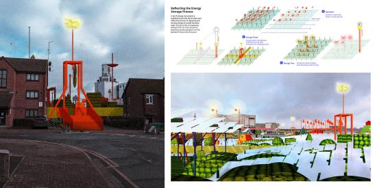 The project sits in response to King George III’s ‘Philosophical Table’, which housed a range of didactic instruments to demonstrate science principles. In this way the proposal is conceived at various scales through a series of bespoke and performative ‘battery’ buildings, connected via a blanket of solar panels and walkways. Each battery also hosts public spaces to demonstrate its practical and performative nature. The spectacle of both bold and trivial science imagination is playful and immersive, yet also reveals the complexity of human and environmental relationships.