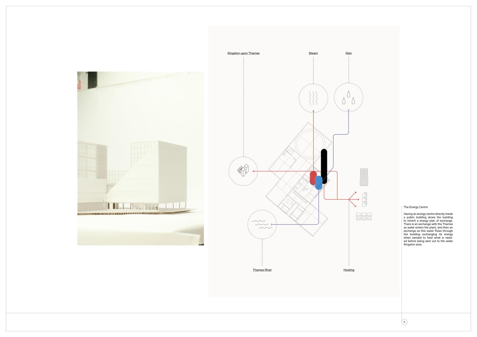 Public energy infrastructures were once in open communication with the rest of the built landscape. Over the decades, energy infrastructures have been pushed into the outskirts of backlots, hidden in rural landscapes and transferred to the realm of out of sight out of mind. This tucked-away, centralised approach, might have once worked, but now with the increasing need to decentralise our public infrastructures, these buildings are returning to our urban/suburban environments. With this encroaching condition, this project investigates, how could an energy centre become a public building?