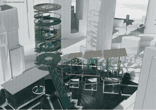 The design theology that I used to develop this project is known as the “kit of parts” I deconstructed a piece of machinery that Is planned to be archived by exploring forms as building spaces within the primary sightlines of the site determined by the evolving context. Most importantly the building itself was treated as a piece of evolving machinery with watermills and windmills to generate on site sustainable energy while having an onsite water treatment centre that gives back to the local grid. This was important because data shows the second biggest effect of flooding is drought, due to a lack of clean drinkable water.