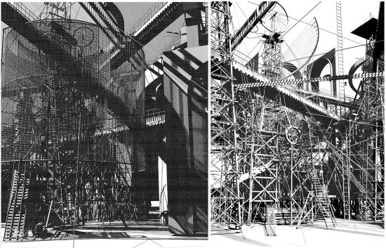 16:1 How to Rebuild the Unit of the Carceri D´Invenzione Series Part 2 Project 2024 Pedro Del Campo Pontifical Catholic University of Chile Santiago | Chile This research presents a mechanism for the reconstruction of Giovanni Battista Piranesi's Carceri d'Invenzione series as a single unit. Although traditionally interpreted as sixteen independent representations of prisons, this new perspective suggests that they are fragments of a single decomposed space, defying the conventional idea of unity. The research seeks to restore this unity through a methodology that converts the representations into tangible objects without imposing a definitive answer. This involves practices such as reinterpreting, translating, betraying, dismembering and recomposing. The approach is to promote the constant exploration of their potential unity rather than to establish definitive answers. In other words, they are not unconnected entities, but fragments of the same place, offering different perspectives of a single prison. The author invites the viewer to recompose spatial distortions and fragments of a seemingly unsolvable puzzle. His prints present scenes that suggest centrality, but never achieve it when viewed as independent pieces. But how can one undertake an architectural project based on the representation of architectural lithographs, when their constructive nature is posed from the impossible? Tutor(s) Pedro Alonso