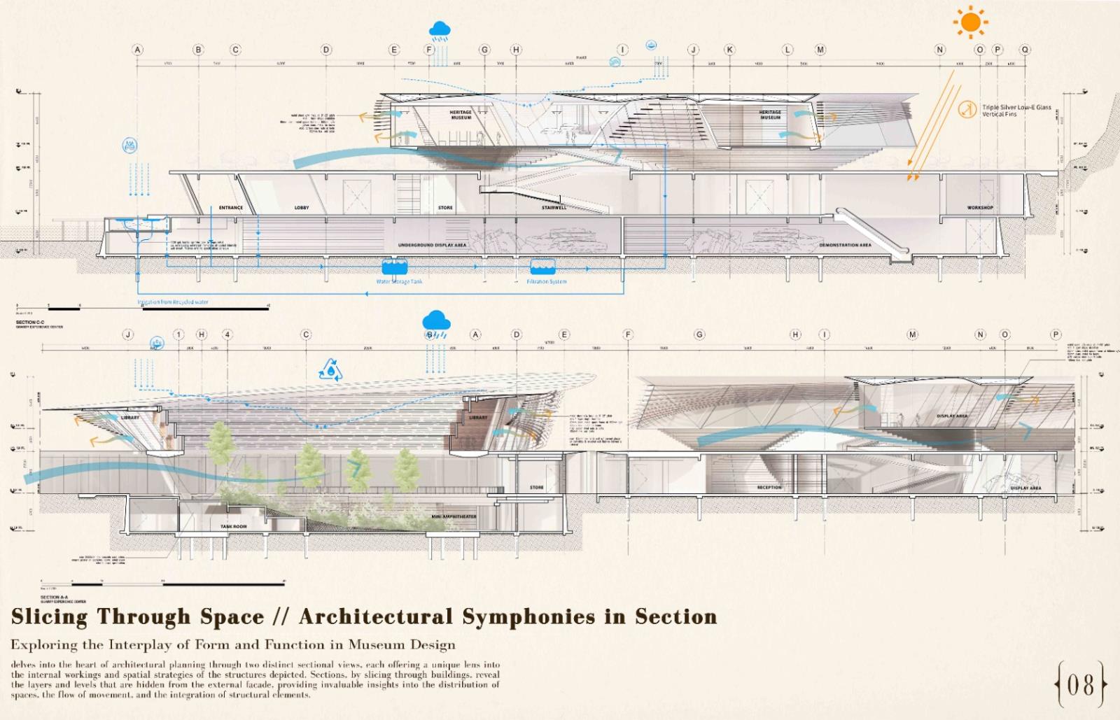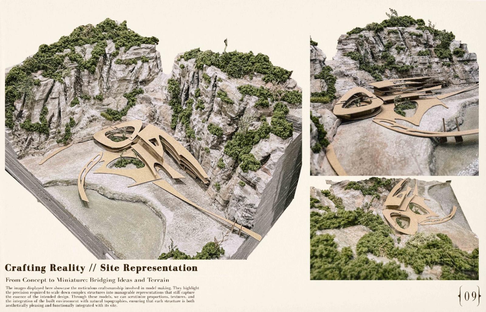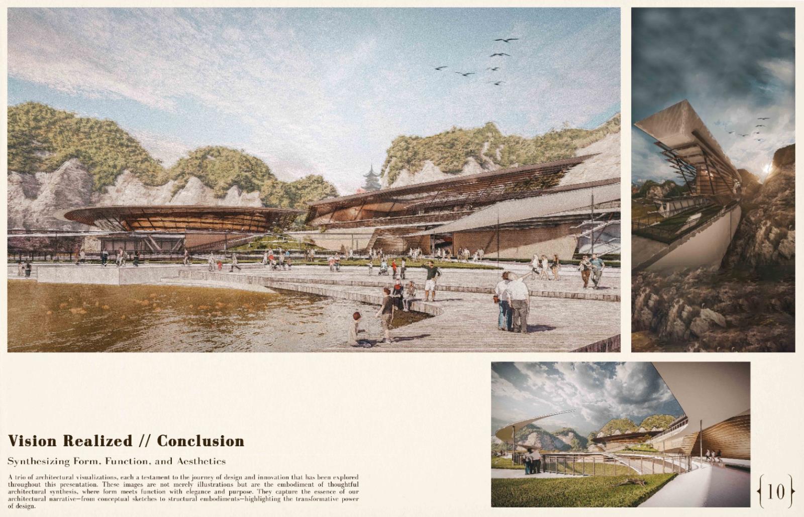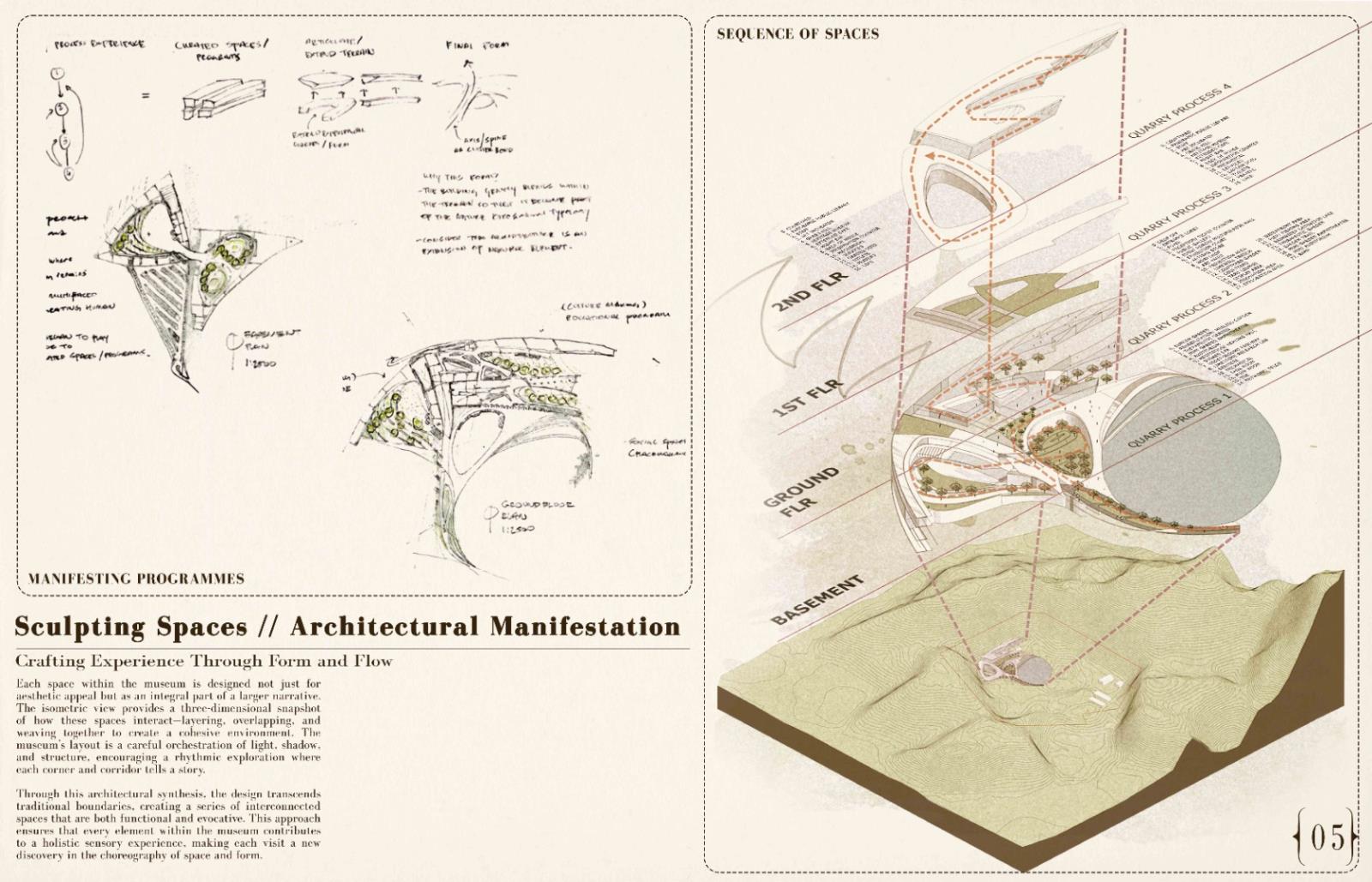 Reimagining Ruins: The Ipoh Quarry experience Part 2 Project 2024 Chin Mann Yuin University of Malaya | Malaysia The "Reimagining Ruins: The Ipoh Quarry Experience" project transformed an abandoned limestone quarry in Gunung Rapat, one of Ipoh's earliest and most significant quarries, had long been depleted but remained connected to the active Gunung Terendum quarry near the North-South Highway by Simpang Pulai. This endeavor aimed to revive and rejuvenate the area, deeply rooted in Ipoh's quarrying history. By integrating the natural topography with innovative architectural elements, the project created immersive spaces that narrated the quarry's rich heritage.Pathways traced historical routes, offering visitors interactive and reflective experiences while highlighting the geomorphic characteristics of the quarry. The design fostered an aesthetic that evolved from the natural surroundings, promoting both sustainability and community engagement.The center provided recreational activities, enabling visitors to connect with nature and fostering an appreciation for the region's natural and cultural heritage. It also enhanced Ipoh's tourism value through educational exhibits, countering the perception of environmental degradation. The project exemplified how thoughtful design could merge history, sustainability, and community, ensuring the quarry's legacy endured for future generations. As a beacon of hope, the Experience Center renewed the spirit of Ipoh’s landscape and heritage, making it a pivotal site for cultural and environmental education. Tutor(s) Mastura Binti Adam Zuraina Leily Awailudin Zulkhairi Md Zain