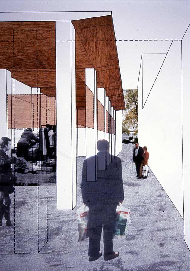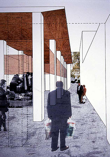 Between movement and stillness, openness and closure, public and private; there lies a space of pause...It is a space that relates the everyday with the theatrical, city with nature, man with the world. In between city blocks passages are more than linking routes, they are thresholds withinn the city. Spaces onto which images of the garden are projected, glimpses of light and darkness, invitations for the inhabitant of the city...There, in the projective spaces is where life happens, people are linked with a reality that lies beyond the space. It is where the invisible is sensed.