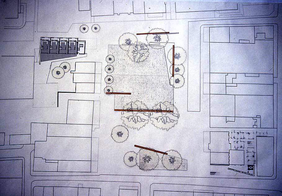 Residence and Market: two buildings of different character. Hoxton Square: a garden, a room of trees. Here, the time shift of the office workers meets the rhythms of day and night, sun and rain, when they sit in the square for their lunch break. The project is about the reality of the city: 'living in' and 'arriving at' the garden. Two conditions that nevertheless describe a place of diversity.
