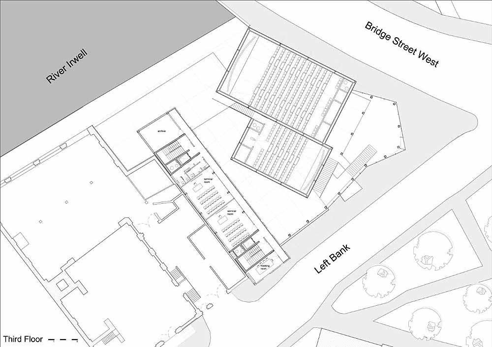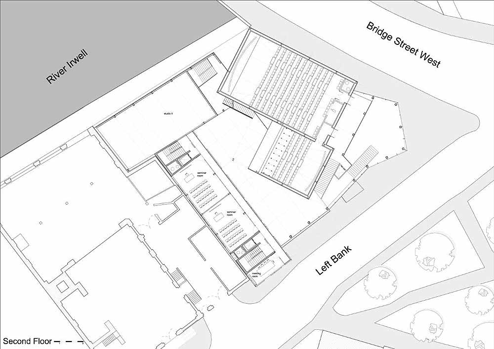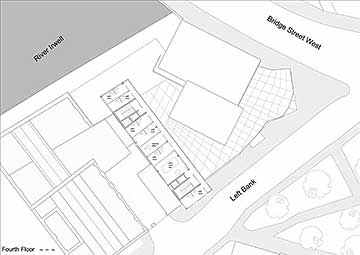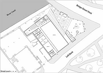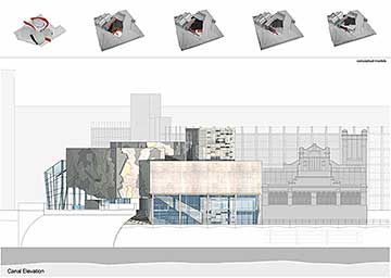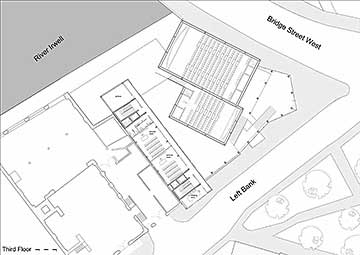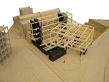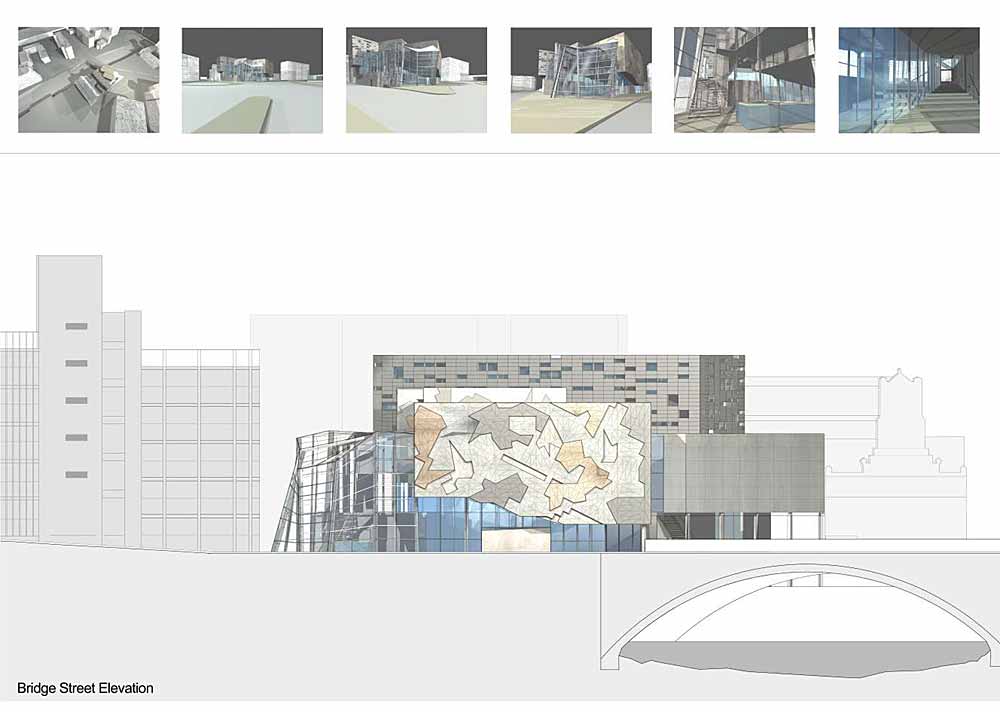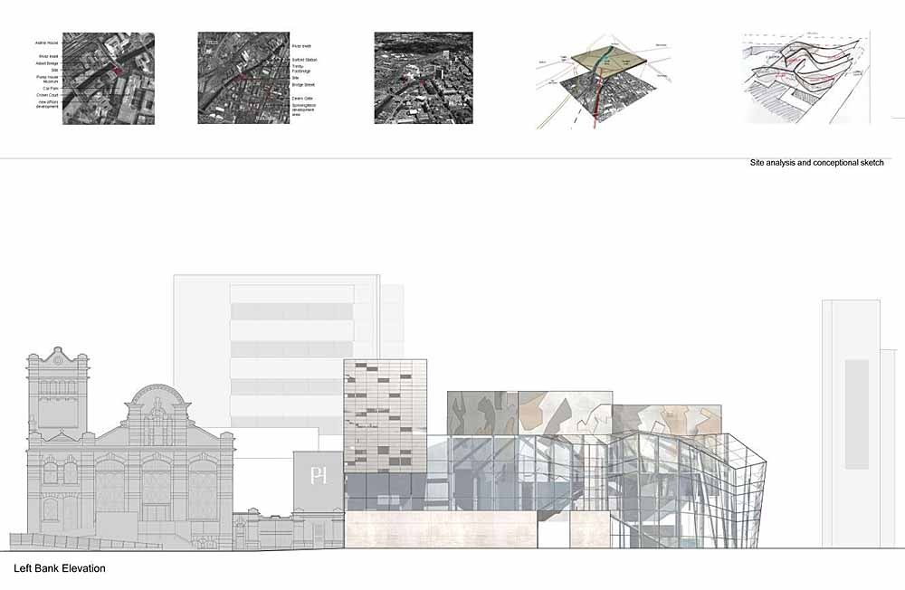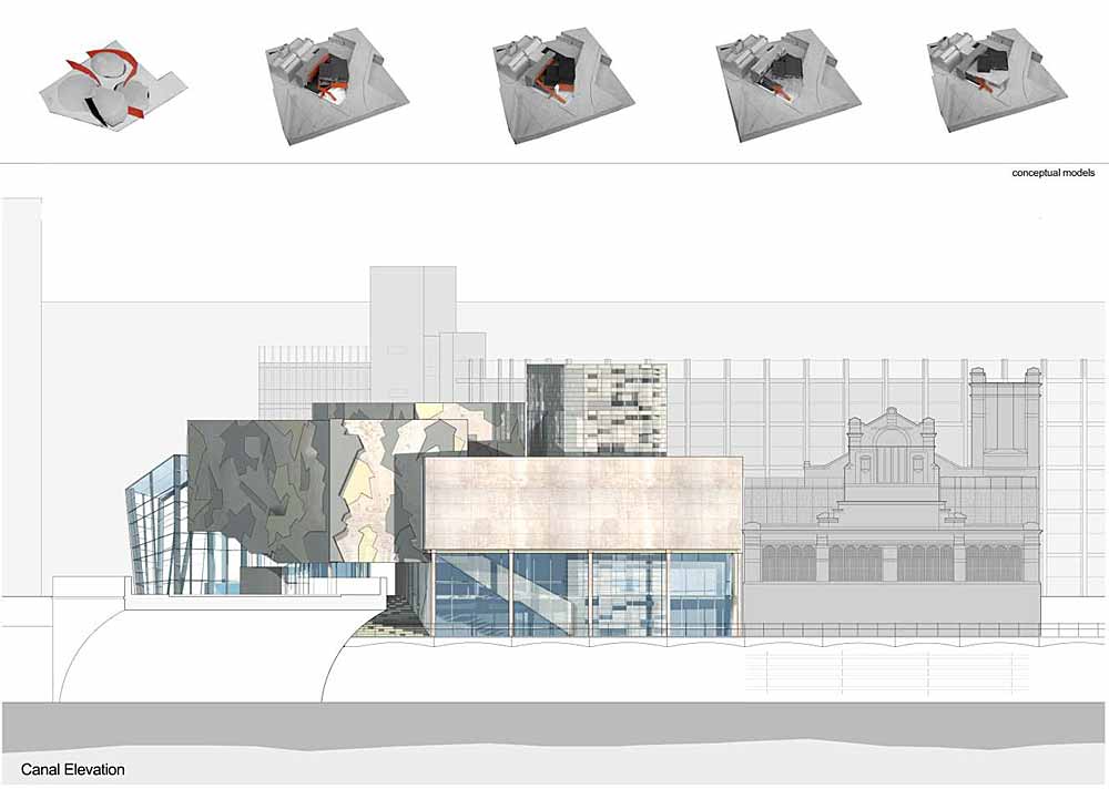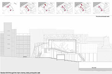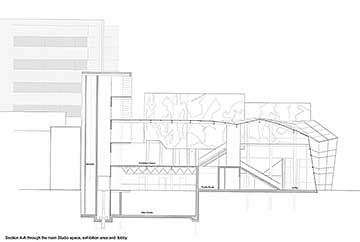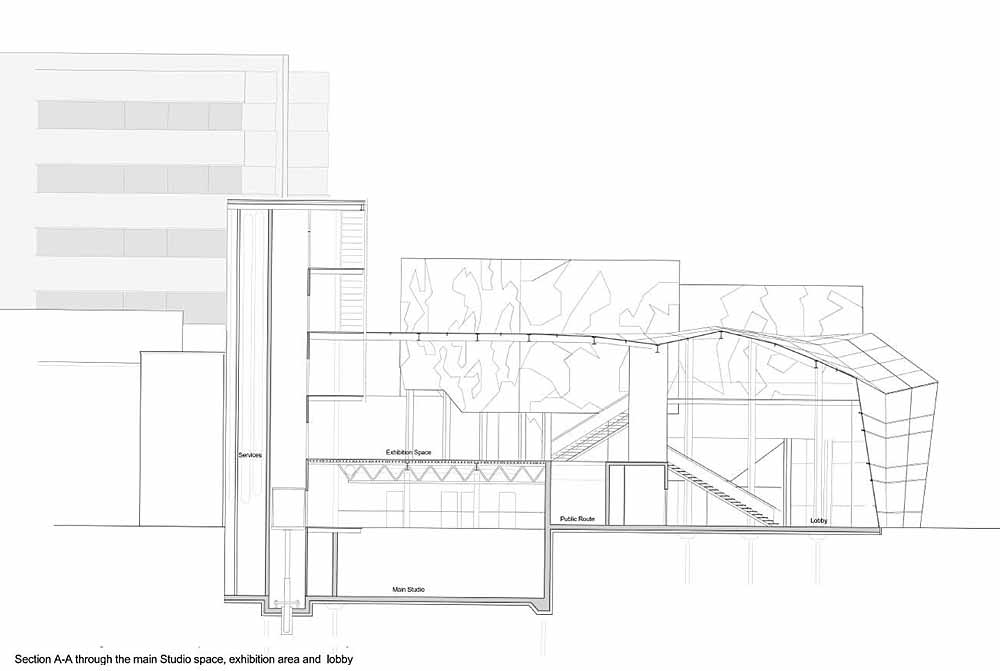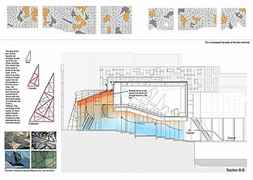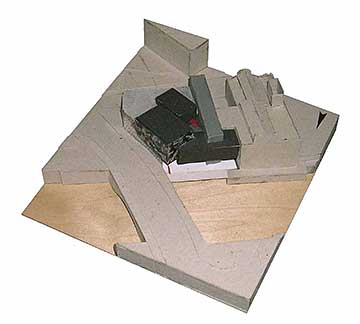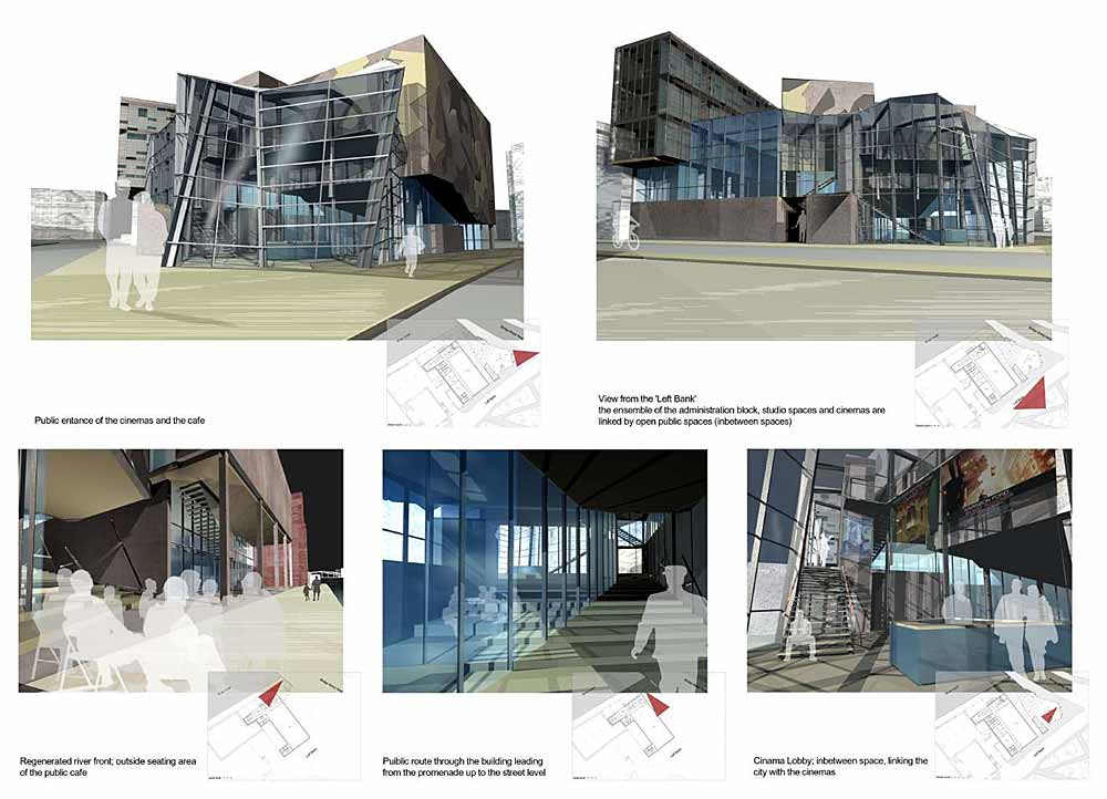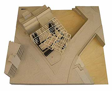 Untitled Part 1 Project 2003 Felix Lauffer De Montfort University | UK Architecture can mediate between performance and use. Different but yet related fields in an urban environment create a continuous space of transformation. The same principle can be applied to architectural design in order to integrate various uses and create a continuous and fluid entity. For this project the building had to occupy five different uses: staff facilities, studios, technical facilities, art-cinemas and the cinema foyer. Each of this elements should function as individuals, but should yet form a fluid entity with its related and overlapping functions. In order to provide this fluid entity, intermediate zones are introduced, expressed by the open public spaces. The approach to architecture of Felix Lauffer is a product of the ability to assimilate ideas related to some of the more adventurous contemporary design images allied to innovations in computer programming. This leads to an assuredness in his conceptual approach that leads to slick images of design proposals at times investigative, and at times seductive in the way the essence of a design proposal revealed. Felix has already made study tours of the work of contemporaries such as the Austrian designers Baumschlager & Eberle and in contrast has some knowledge of recent work of the Californian Sci-Arch people. His final design at DeMontfort brought together aspects of the formal tectonic quality of the Austrians with the, at times, ethereal transparency of Eric Moss. To an extent architecture may appear as a formal and spatial game to Felix in which indeterminacy in form is resolved by accepting a continuity of computer programme.