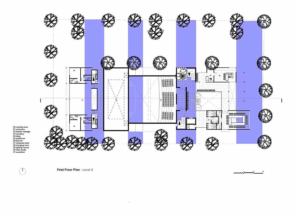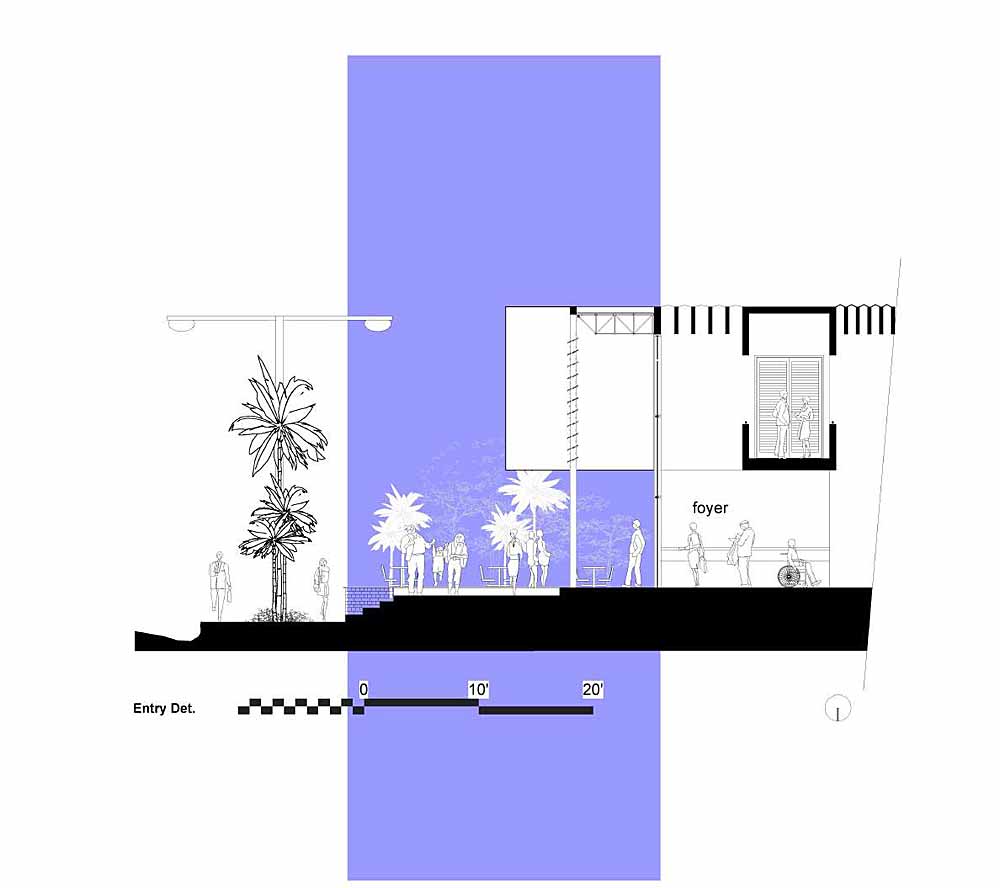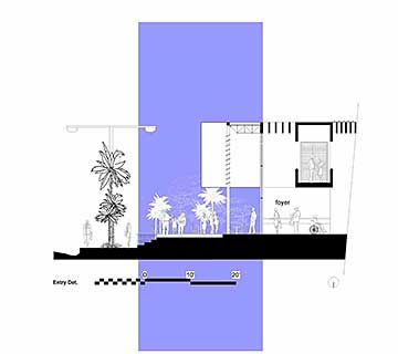 A Theatre for the Performing Arts Part 1 Project 2003 Anthony Hutchinson University of Technology Kingston | Jamaica A THEATRE FOR THE PERFORMING ARTS - SAVANNA-LA-MAR, JAMAICA. This project is an exploration of the notion of thresholds and the dialogue between the inside and the outside. It seeks to utilize thresholds primarily to mark the journey from the outside to the inside. Inside, the theatre is the place where reflection, refraction and diffraction are used to debate or ridicule any topical issue. The space dedicated to the viewing of a performance is fundamentally a “black box.” The “black box” is volume of darkness, which seeks to package, highlight and sell the assets of the outside. Outside, the site is located on one of the edges of a proposed plaza. This plaza seeks to create a place of contemplation in contrast to 100m sprint urban street that borders it. The project tries to echo the plaza and serve as a counter to the street. The dialogue between the inside of the theatre and the outside is intended to be a journey that is clear and void of ambiguity. This is expressed by modulating the use of materials and the manipulation of space. The result is a hospitable transition from the incisive edge of the plaza to the sedate Black Box of enlightenment. The studio focused primarily on the creation of a cohesive centre to Savanna-la-mar, a small town in rural Jamaica. A public plaza was used to create this "centre". This plaza was subsequently bound by the civic programmes of Library, Courthouse, Theatre and Community Centre. The idea of the theatre as a sequence of thresholds and discoveries was developed from the experience of journeying from the proposed plaza through the site to its western boundary. These experiences became a theme that was methodologically analyzed and spatially reinterpreted in various media. The dialog between the programme and the spatial experience as it related to the theme was systematically resolved early. This provided more time to study light and materials, further developing the scheme. The scheme was particularly successful in its scale and massing as it related to the context of the proposed square and Savannah la Mar. The presentation was well composed and the various models and drawings were technically legible and spatially self-explanatory.