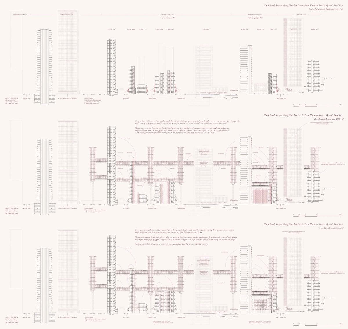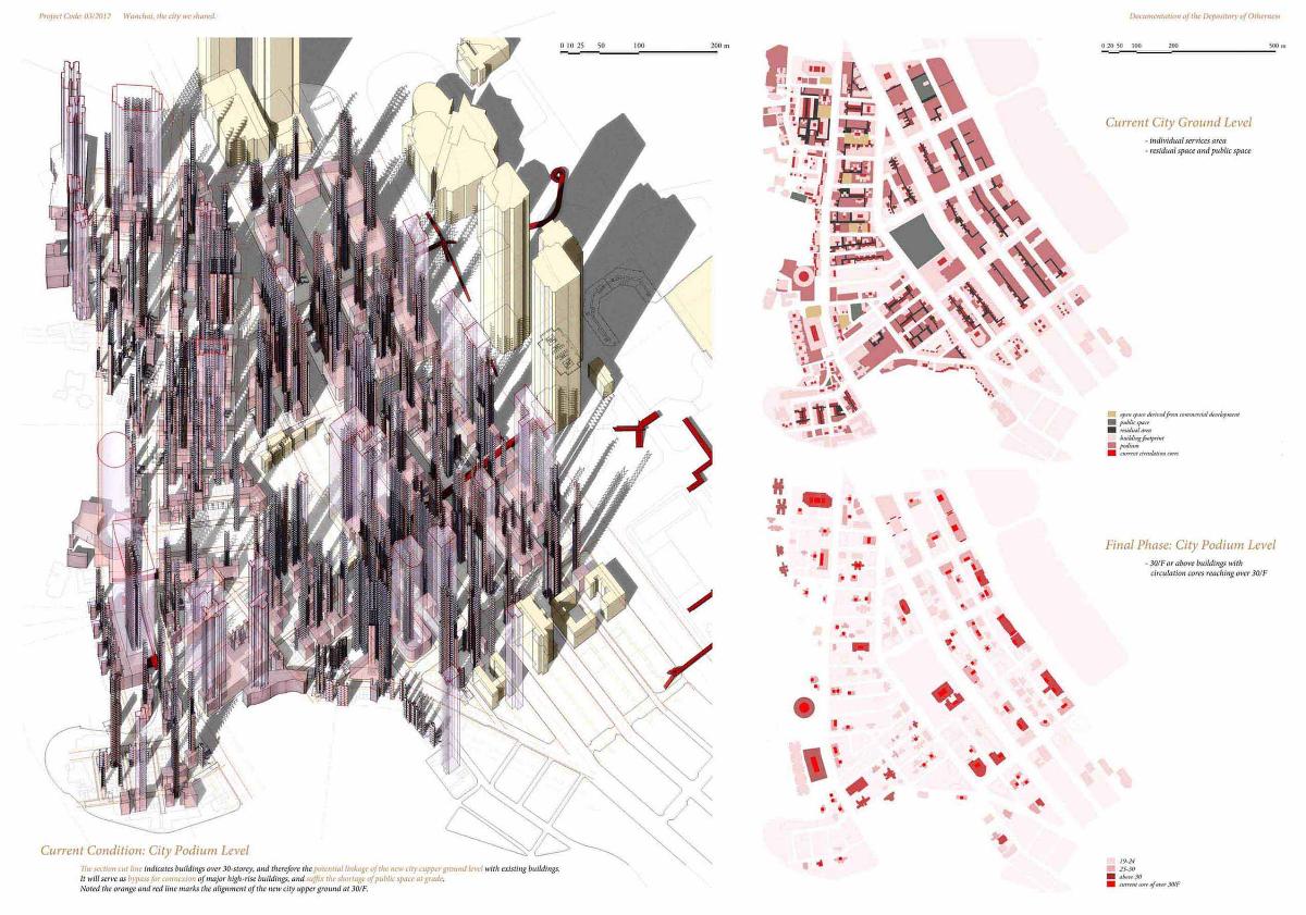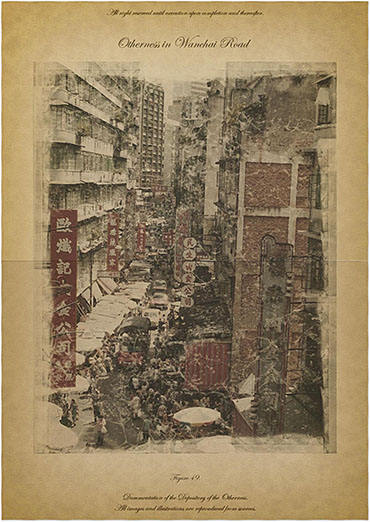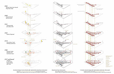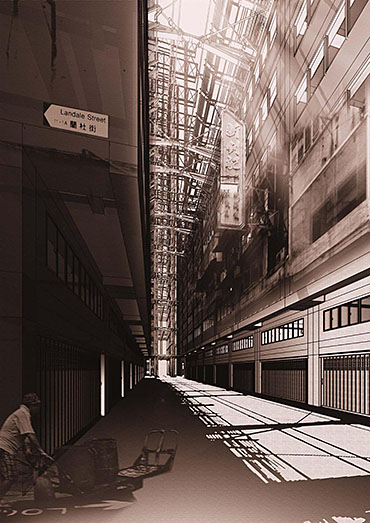 A Discourse on Architecture and Identity. Procuring Collective Memory: An Institute for The Transient Part 2 Dissertation 2013 Ching Kan Chan Chinese University of Hong Kong | China As a local citizen of Hong Kong born in 1980s, it is difficult to comprehend who exactly we are or what represented us: traces in the built environment hardly speak to us other than a coastal image of glittering office towers celebrating the agenda of capitalism. Cultural heritage and museums exhibiting the past hardly conveys a sense of belonging to our present community. The thesis is an attempt to understand why and how such happens.By understanding how identity is manifested in the built environment, the thesis questions how local identity can be sustained with social progress by following the course of history. It is a journey of continuous discovery and appropriation of history in order to fabricate a cultural logic that is local specific.It consists of three episodes:I. a research on architecture and identity in relation to capitalistic society;II. a retroactive manifestation of an unstated project spanning over 200 years that shapes the uniqueness of Wanchai as known today; andIII. a design project that dwells on the research and logic as a projection of history.Episode I aims to formulate a holistic understanding of how identity is related to the built environment and identify challenges and difficulties of how ‘identities’, whether as given by history or manifesting local livelihood, are conveyed and translated into the built environment in relation to present socio-economical condition.Episode II is an allegorical construct to reveal the logic underlying the development of Wanchai since the city was found in 1845. The construct, the depository of the Otherness, is a recollection of historical events and evidences to support the plot of the unstated project: a culture of the transient; an identity manifesting in the built environment that contributed by local public without direct governance, regulation and imposition, which celebrates the local livelihood and progresses with time.Episode III is an attempt to project the logic in order to sustain local identity with social progress; a procurement of local identity before it falls into oblivion. Tutor(s) Marisa Yu