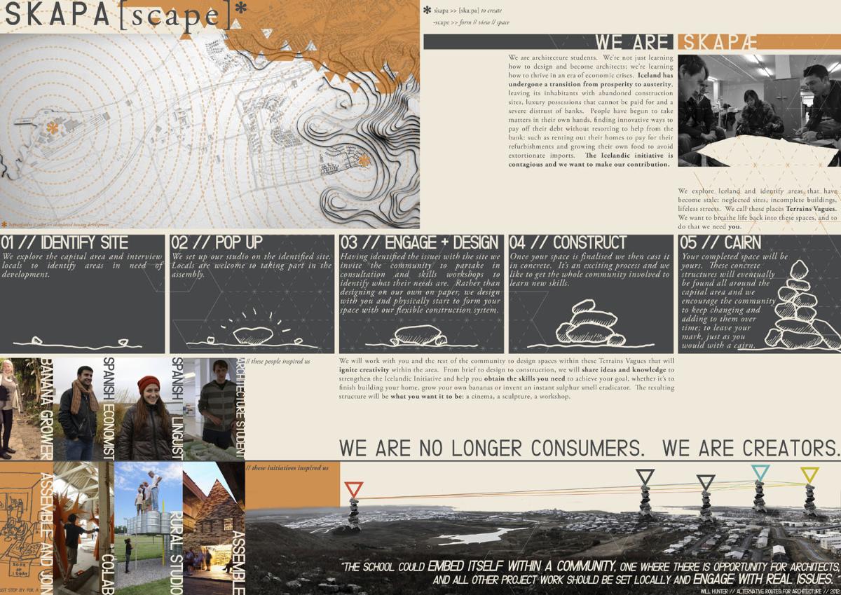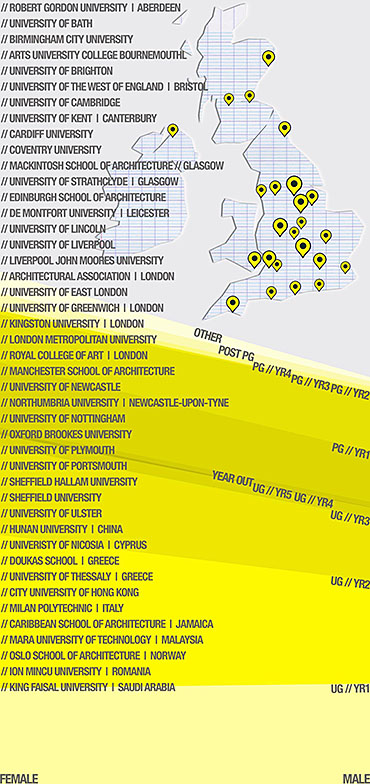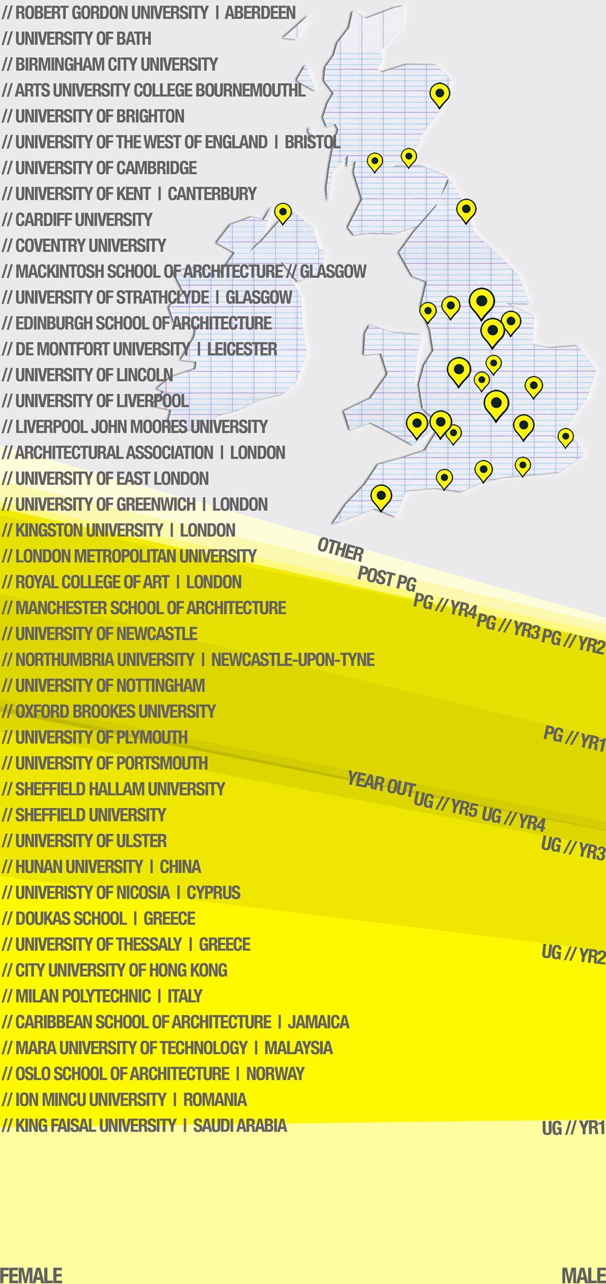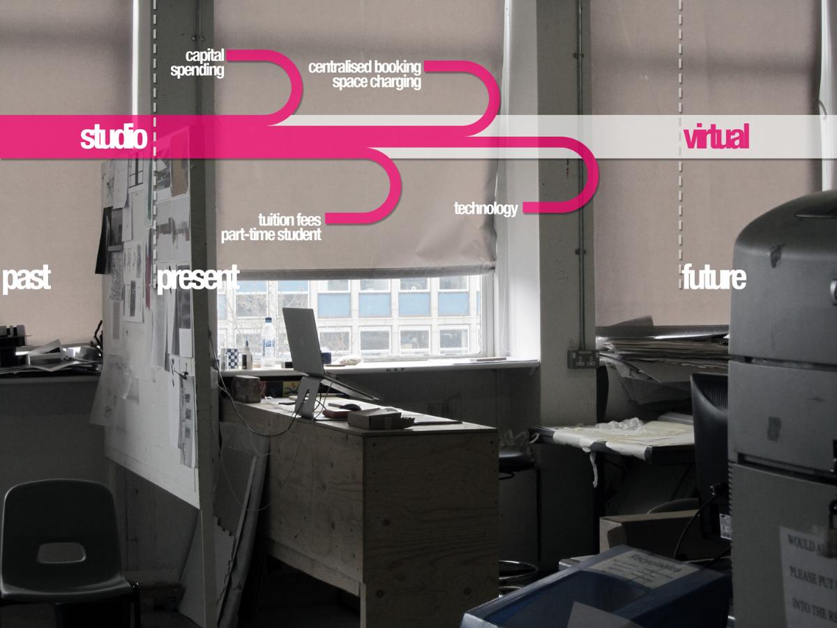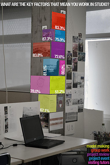 An Operating Manual for Studio Culture Part 2 Dissertation 2013 Holly Doron Birmingham City University | UK The design studio’s central role in architecture pedagogy is apparently under threat. In the context of current technological, economic and social challenges, the studio as a typically resource-intensive facility (Borden et al, 2010. p. 13) seems to be an endangered entity. The protracted economic crisis, combined with increased tuition fees, university space charging, centralised room booking and reduced capital spending, means that architecture ‘[d]epartments are increasingly valued according to the amount of the outside money they bring in value engineering and reengineering have begun to be applied to academic ranks.’ (Fisher, 2001. p. 3)It is now likely that many Part II students will graduate with £100,000 of debt (Hunter, 2012. p.88). As a consequence, it is increasingly common for full-time students to take low paid employment and work longer hours in order to fund their study and living expenses, with an indication towards another endangered species: the full-time student.This study examines how this changing environment will affect and influence the future of the studio in architectural education. It explores what studio culture is and whether it can endure. Perhaps surprisingly, the research reveals that these changes could not have come at a better time, or, more specifically, during a better equipped generation. These challenging circumstances are ideal to instigate a review of how architectural education develops through studio and how it can evolve, in a homeorhetic sense, to a model more suited to the Millennial and to other future generations. This includes questioning and testing the possible redundancy of physical studio and the inception of virtual studio.The findings gained from this study will prove invaluable to further research; not just in terms of studio culture but also architectural education as a whole. From the perceptions of the student focus groups to the various approaches to logistical problems discussed in the academic interviews, from the personal explorations abroad and making new connections to the extensive data of the online survey: further integrated analysis of all these could yield further valuable insights into design pedagogy, student psychology and behaviour, and institutional policy. Tutor(s)Ms Hannah Vowles