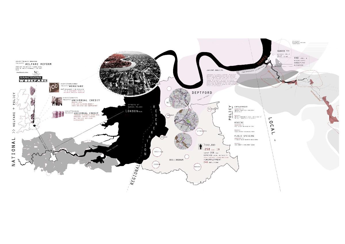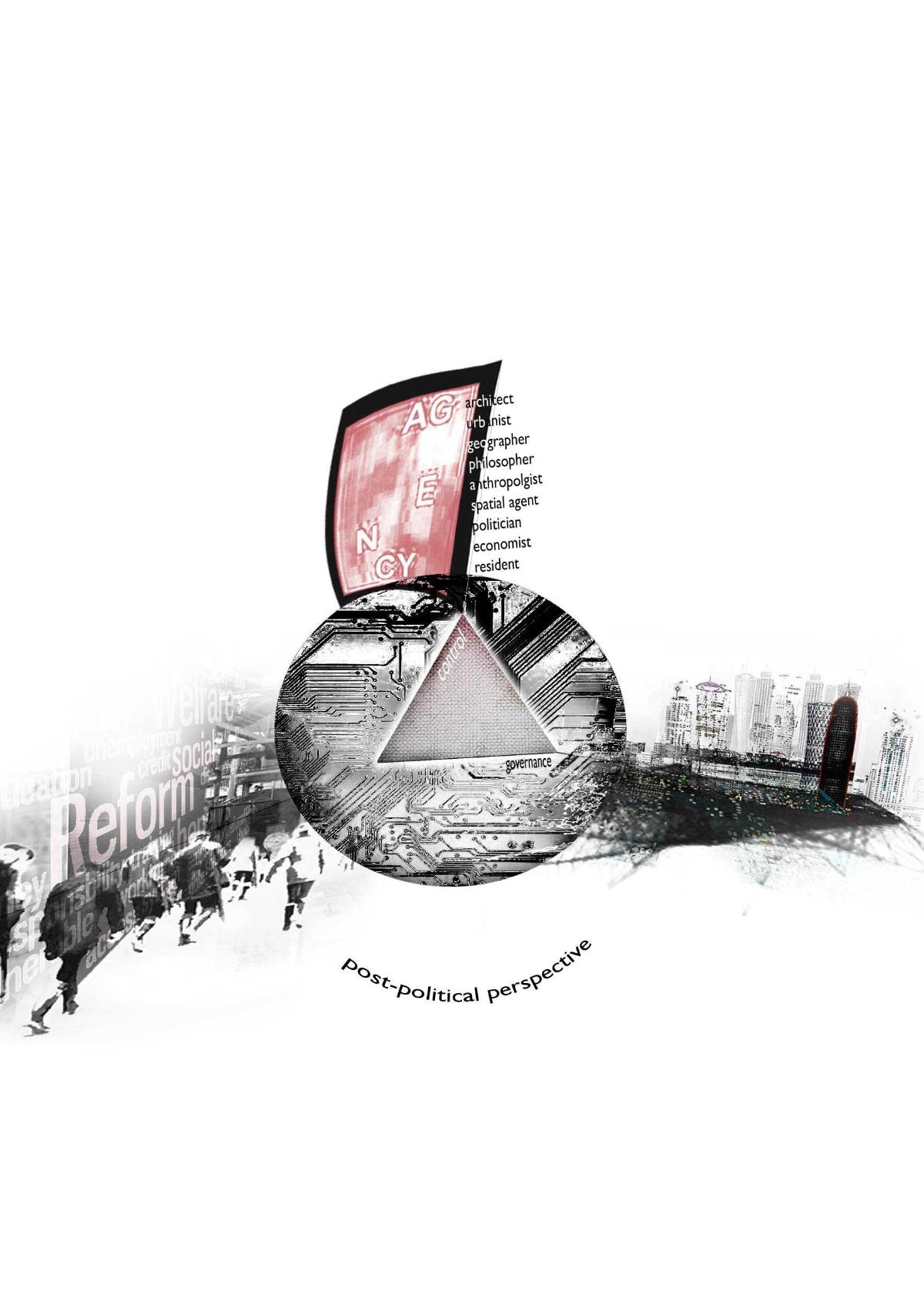 Reform + Agency: A Post-Political Perspective Part 2 Dissertation 2013 Gina Doyle University of Brighton | UK The contemporary paradigm of ‘post-politics’ as described by philosopher Jacques Rancière amongst others can be contextualised through the changing political landscape, as the physical and spatial structures of our urban environments are being subjected to mass reorganisation through a shake-up of the welfare system. If welfare reform and State devolution are a dominating influence over the city and its citizens, and consequentially, this dissertation argues, over the professions and practices [agency] involved in the city as a project. In this paper, the intimacies of the 21st century city are therefore examined through the 'post-political' polemic which, according to Rancière, suggests that the polis [political proper] is undermined by the role of managerial and administrative governance [police] where consensus prevails. The post-political ideology has become embedded in our cities: the policy which governs, the agents who act upon, the citizens who demand, and has had an overriding affect on architectural practice as well as academia. What does this mean for architecture as a profession?Architectural culture is explored through the evolution of education and trends in practice, opening up a discussion regarding the role of the architect in the post-political city and examining how alternative modes of agency [the new vanguard] are adopting approaches outside the comfort of convention, beyond the building of buildings, within the realms of researcher, thinker and instigator of [spatial] agency.This dissertation suggests a rethinking of multi-disciplinary and collaborative models by the profession: moving away from its partial isolation from other disciplines, becoming more critically engaged with the current socio-political framework, operating at macro and micro scales, in order to reflect and act upon the potentials of future urban intervention. This dissertation further argues that rather than seeing the post-political as an obstacle, it should be used as catalyst for the practitioner to find opportunities in the tensions which arise from the complexities of the devolved political, economic and social systems. Thus design becomes a tool for narrating the current condition while simultaneously rethinking new scenarios, whereby spatial and urban agency becomes a mediator/instigator/shareholder in a trans-disciplinary approach, with the objective of empowerment and engagement. Tutor(s) Alex Warnock-Smith