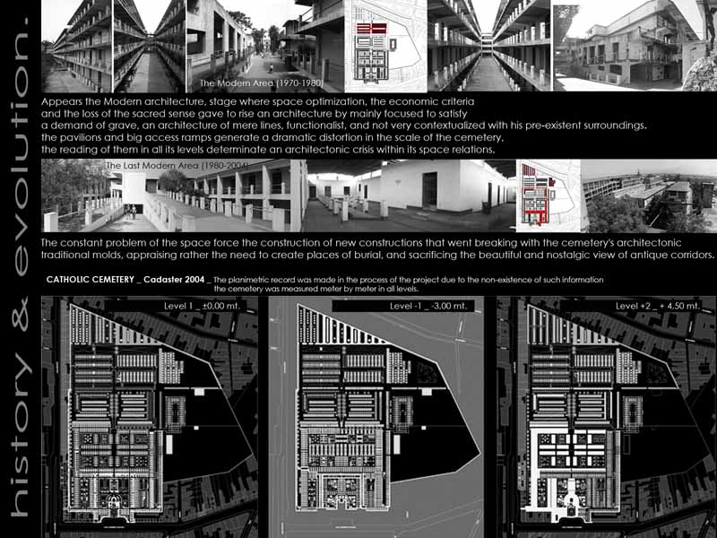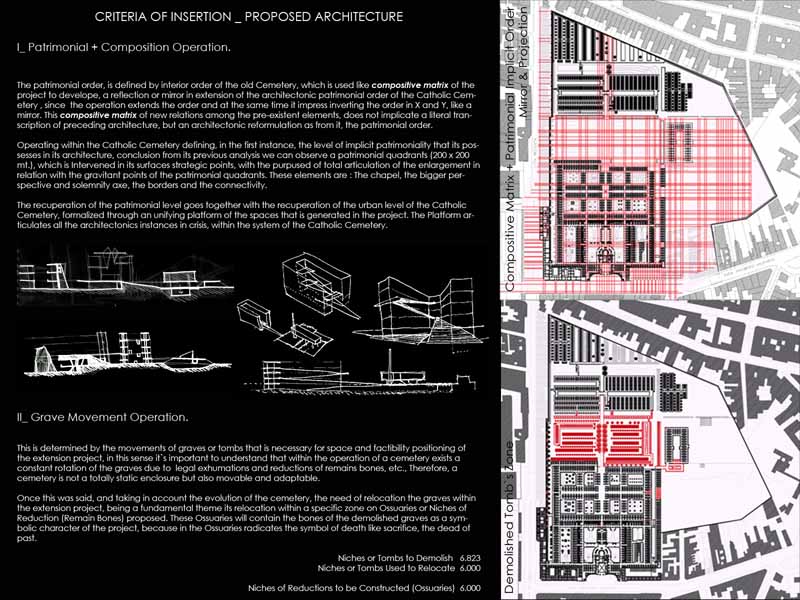 The architecture of death represents the desires, fears, and hope of every culture. Therefore, to project a new Extension for the old Catholic Cemetery it’s necessary to understand the occidental man's changes about his own death.
