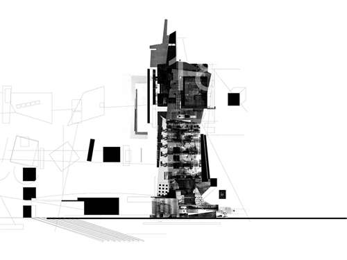 Terrain Vague: Shipton on Cherwell Cement Works as Pleasure Park Part 1 Project 2006 Oxford Brookes University Oxford | UK The project is located on an abandoned site outside Oxford. It is a vertical pleasure park or ‘Parc Verticle’. It reuses existing built forms on site responding to Terrain vague or Junkspace. Routes and paths were mapped out and used as key reference points for journeys across the new park. They established orientations for three new structures. These 250m high event structures swamp the already monumental existing forms. The park explores the phobias of vertigo and photophobia. By forcing visitors to respond to excessive height and light intensity, it inflicts discomfort and forces them to overcome such for pleasure. This project has been nominated because it is ambitious and well executed. It has been produced by a young student with an unquenchable enthusiasm for architecture. From such, he has created exquisite representations of his ‘fearless’ utopian vision for a pleasure park in an abandoned cement works.Inspired by the writings on terrain vague by Ignasi de-Solà Morales, the design appropriates the disused Shipton on Cherwell Cement works. High rise titillation towers hover over, and are supported by the legs of, the crumbling concrete structures underneath. The fantasy project both transforms and embraces the memory of the neglected site.