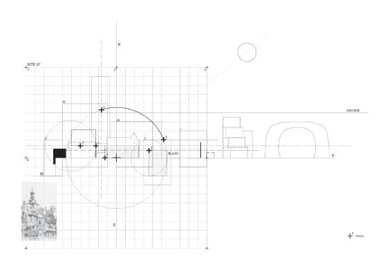Trace, Wall, Iterability: On the Language Question in the Thought of Jacques Derrida and Peter Eisenman Part 2 Dissertation 2021 Rebecca Evans University of Central Lancashire | UK This thesis focuses on the notions of trace, wall, and iterability, as a conceptual framework to examine and open up questions for understanding the language of architecture. It first, introduces the current and canonical debates surrounding language and architecture with works of key figures Aldo Rossi, Mario Gandelsonas, and Manfredo Tafuri. This leads into an exploration of current debate around the thought of Jacques Derrida and Peter Eisenman. Analysis into trace and iterability, through close reading, writing, and drawing is undertaken to bring forward the discussion of their translation within architecture. The accompanying images, drawings, and montages aim to provoke thought by thinking-through-drawing in dialogue with the text. Using this methodology performs the theory of the thesis, to present a guide for understanding and developing architecture as a critical project. Although Derrida has numerous notions within language, only trace and iterability have been chosen as the focus. Others have attempted to define these ideas through Derrida’s thought in writing, yet little has been produced on their use (translation) within architecture; unlike that of deconstruction. The research aims to re-engage with the language-architecture debate and bringing forward an alternative way of thinking, viewing, and creating architecture. Tutor(s) David Hasson Cameron McEwan
