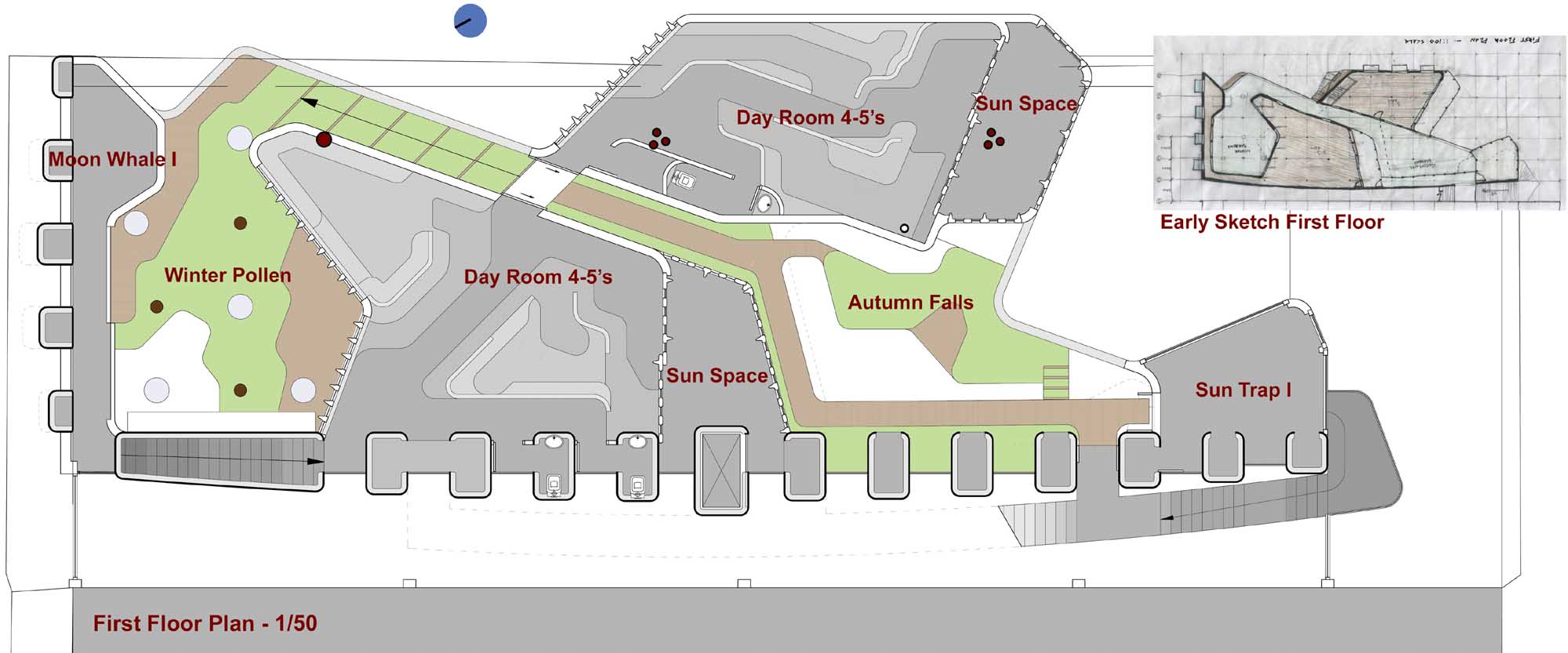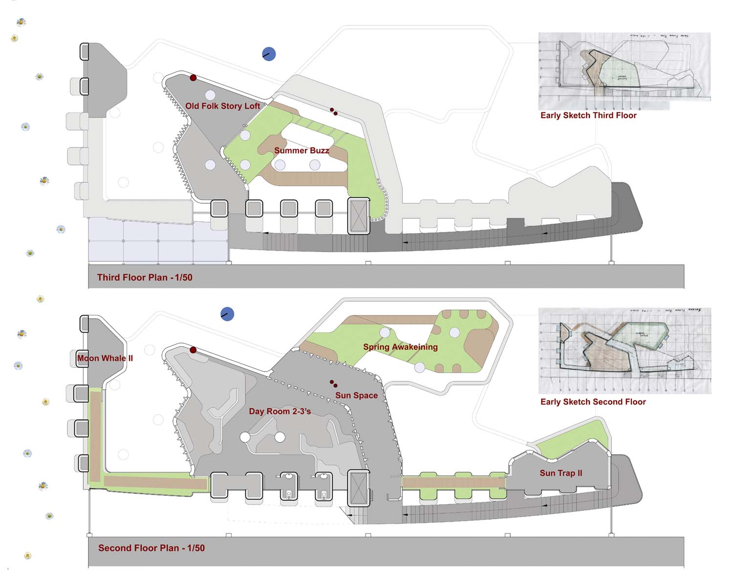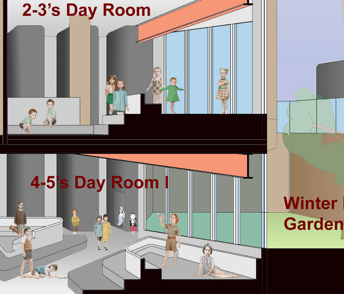 Duke Street Nursery School, Liverpool Part 1 Project 2006 Declan Shaw University of Liverpool | UK A child raised in an ‘artificial reality’ will not develop an adequate sense of spirit or ‘Place’. His alienation may cause erratic behaviour throughout life. It is my aim to provide an architecture which will fulfil a sense of world ‘Place’. Social interaction, space appropriation, organic substance, seasonal change and physical exercise are all vigorously brought to the children through architecture. The building separates the robust and public external realm and the soft and subtle child spaces. The elegant timber day rooms represent mans organic occupancy amid the colossal monolithic steel cones; they represent a spiritual comfort amid the elements. This project explores the tactile and temporal dimensions of architecture. The building offers children numerous possibilities to use its spaces creatively as seasons change. To achieve this, the building is turned into succession of gardens, each related to a specific time of the year and located at different levels throughout the building. Interior space exists only in relation to the adjacent gardens and all, interior and exterior spaces, are intricately connected either visually or physically. This makes experiencing the building exciting and non-monotonous. Furthermore, children can experience nature while being in the centre of a harsh urban environment like Liverpool.