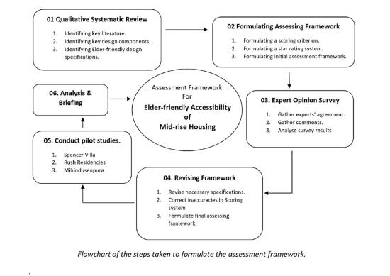 Developing a Comprehensive Framework for Assessing Elder-Friendly Accessibility in Mid-Rise Residential Buildings in Colombo Part 2 Dissertation 2024 Nesura Bulathsinghala Sri Lanka Institute of Information Technology (SLIIT) | Sri Lanka This research dissertation addresses the lack of elder-friendly specifications in mid-rise residential buildings in Colombo, Sri Lanka, where nearly a quarter of the population will soon be over 60 (UN Population Statistics). With the over-65 demographic projected to rise from 9% in 2019 to 18% by 2050, there is an urgent need for age-friendly environments. The study proposes a comprehensive framework to assess elder-friendly accessibility (EFA) based on 110 design specifications across 21 key components. The methodology involves three phases: a qualitative systematic review to identify key design principles like safety, support, cognition, and well-being; formulation of the assessment framework by reviewing international and local standards and localizing through expert consultation; and validation of the framework through experts’ opinion survey and in-depth case studies. The outcome is a practical assessment framework for evaluating EFA, promoting inclusive living environments, addressing urban infrastructure deficiencies, and providing guidelines for future development. Additionally, it is easily adaptable to different countries and building categories, addressing the need for elder-friendly environments globally. The proposed framework not only assesses existing case studies but also serves as a design tool for creating inclusive environments for older adults, fostering age-friendly urban development. Tutor(s) Priyan Sudesh Hettipathirana