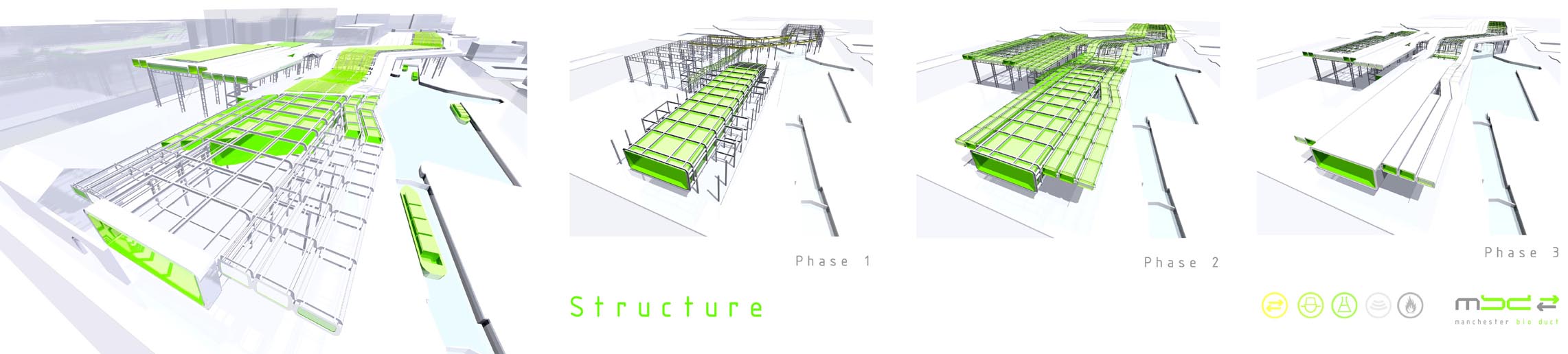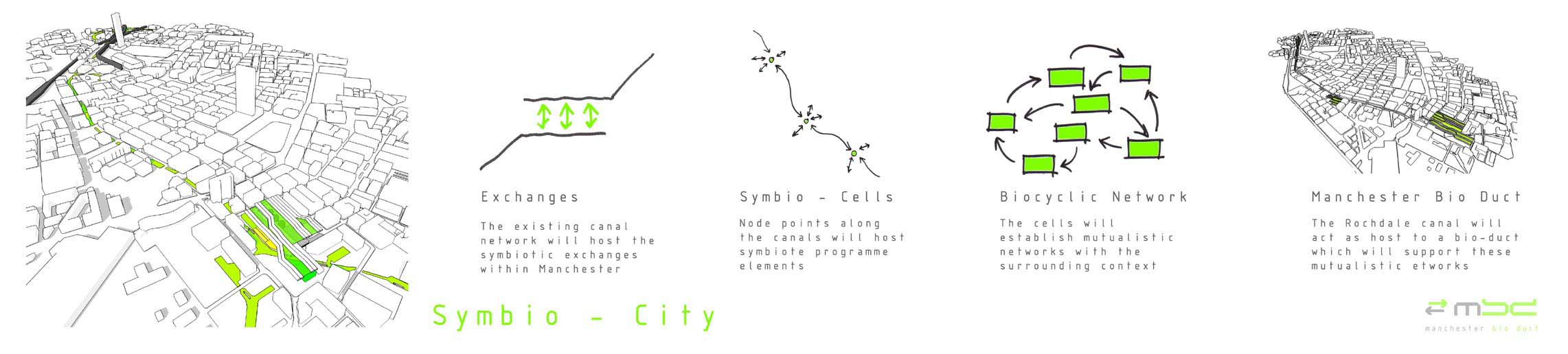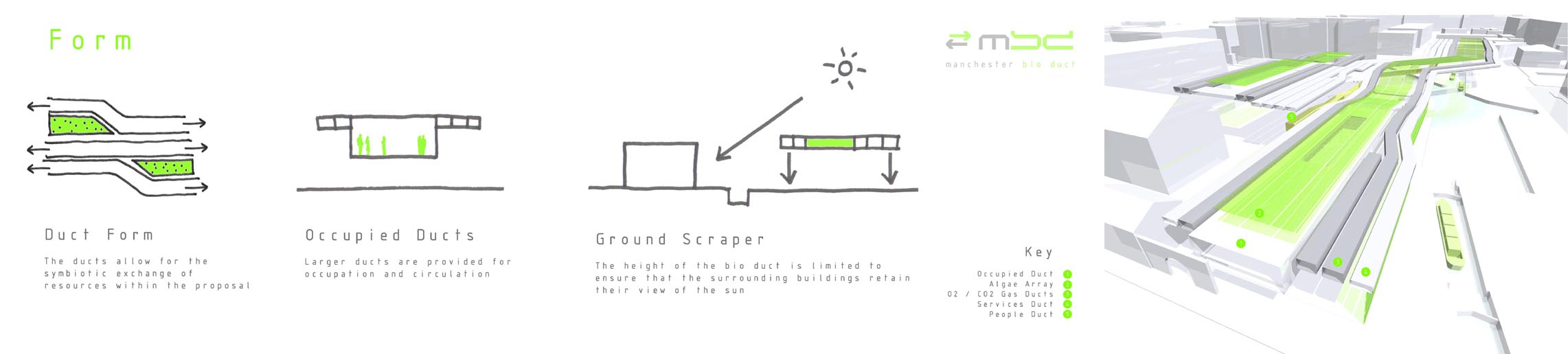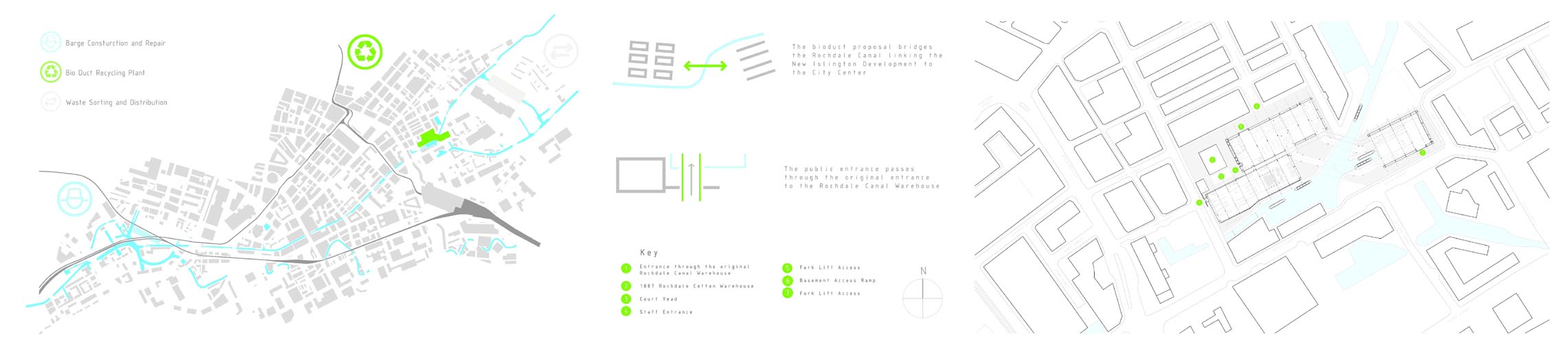 The bio duct proposal aims to re-use Manchester’s canal as a waste recycling network that will interact symbiotically with the city system.