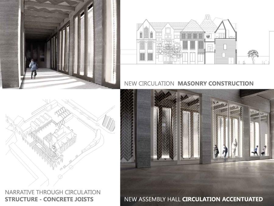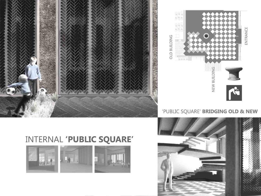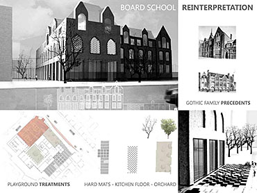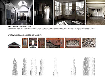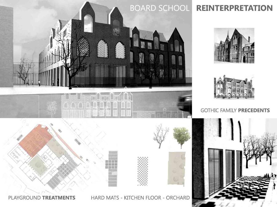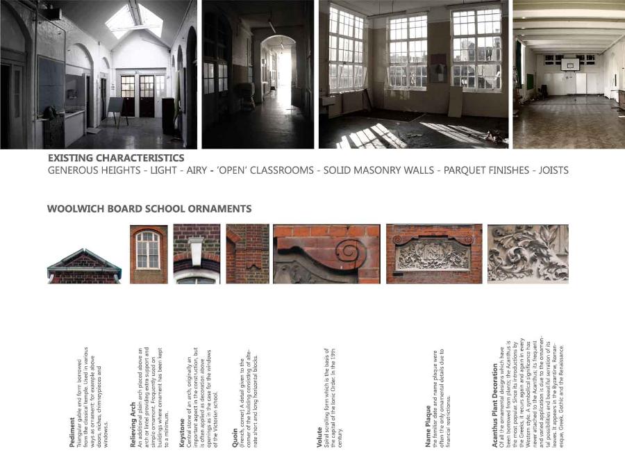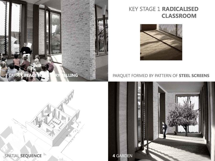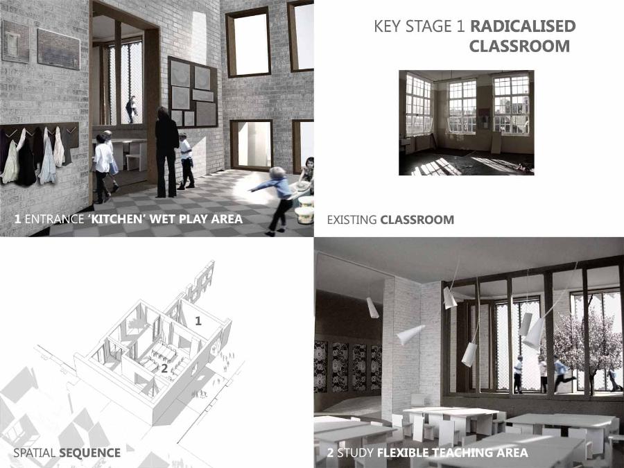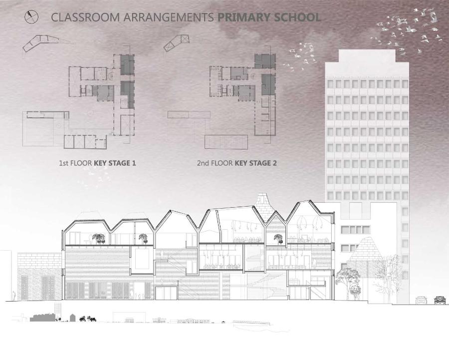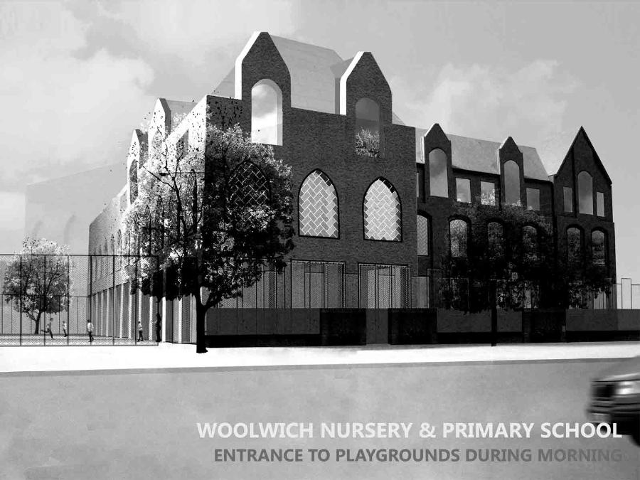 Woolwich Nursery and Primary School Part 2 Project 2008 Jen Kui Choi Kingston University Kingston | UK In response to the new housing development in the Woolwich conservation area, a new local school & nursery would be a welcome addition to the efforts re-energising the town. A disused Victorian Board School surrounded by dreary context becomes the unusual inspiration for the fun learning environment the new project hopes to bring to the younger generation. The existing building is radicalised to re-emerge as an exemplar school and as a possible solution to the family of board schools under threat of demolition following the emergence of new build schemes under PFI. Jen is a student with a subtle, knowledgeable and intuitive sense of architecture. Throughout his studies he has developed his architectural sensibility matching conceptual ideas with a keen sense of location, material and programme. In this particular project for a primary school in Woolwich he takes an existing derelict Victorian Board School and ‘stretches’ it, converting and extending the original building into a school fit for the 21st Century. In doing this he has been sensitive to the requirements for a contemporary primary school situated in the heart of a poly-ethnic community as well as to the historical allusions presented by the building style of the original school. Initially he was a part of a group that made a few short films of the area and then he extensively researched and collated a visual record of the Board Schools before developing his own proposals. Together with this group he developed a site strategy which knitted back all of their new proposals into the urban grain of Woolwich. Once he started on the school his material and decorative programme set up a challenging model for future education establishments both in terms of the relationship of the new buildings to the original stylistic intentions of the late nineteenth-century civic structure – steeped in the visions of the Arts and Crafts Movement and the Gothic Revival – but also more generally as a comment on urban renewal through ideas of historical continuity and transformation. These themes have been manifested by the architecture in an intelligent and witty way through the subtle use light, form and material creating a humane environment which ‘stretches’ the idea of state education embodied within the original design, ultimately questioning the role that education plays in progress – both technologically and socially. His use of models, drawings and sketches in his final presentation combine to offer a considered representation of these themes as well as an image of the environmental conditions that would be experienced by the children, accurately depicting the spatial qualities in and around his proposals and giving us a sense of his overall architectural vision.