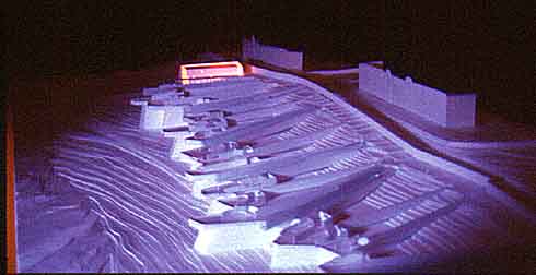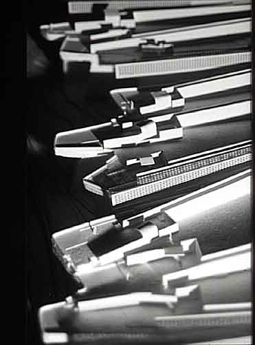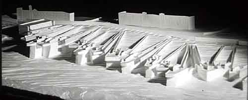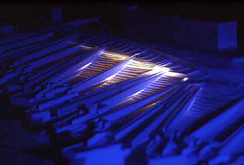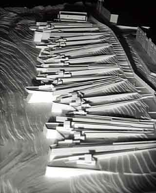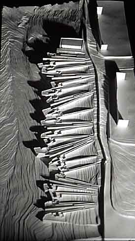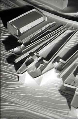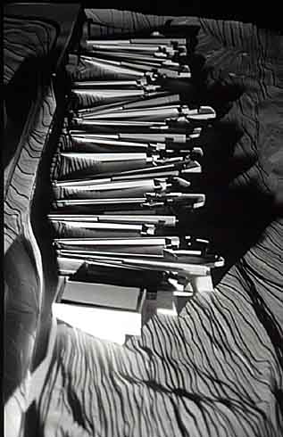 A Place of Remembrance Part 1 Project 1999 Kavi Kittani London Metropolitan University | UK The brief for the year dealt with the idea of archiving the intangible. An everyday object or event was to be observed, analysed and its intangible qualities recorded. I chose a flowering plant. Within the context of our society, the cut flower has become a symbol, a vehicle for expression. It has become an icon, used as a metaphor for life, death and other events. I am trying to look past the references society has placed upon this object.The reason I chose this flower in particular was because its physical appearance was strange in the sense it is not one typically picked for its beauty. It became easier to look at it objectively. What struck me at the beginning was the strong sense of order and hierarchy that existed. This flower has a very specific structure and form and it is this that I decided to analyse the hierarchy of the make up of the plant in terms of its growth.From this analysis, I constructed a device, which attempted to show the order that existed in terms of the whole plant, down to the individual flowers. The device describes the order of growth through the use of water and sunlight. It is a synthetic metaphor of my observations of nature, pinpointing the minute spurts of growth that we cannot necessarily see. It has become an archive of an event.In broader terms, the device describes the continuous cycle of growth and life. There is the idea that the flower itself is also an archive, one of the chemical processes, DNA and time. When we buy a cut flower, we are getting it at the end of its life span. However, for us these last few days of its life presents us with a new existence, a beginning. This is the threshold between life and death. The flower starts its inevitable decay and we are left only with its memory once it has withered completely. Since the device represents the life cycle, I strongly felt it important to speak of death as well. The brief for my scheme evolved into a place of remembrance, drawing on the themes explored in the device.The building was the final stage of the scheme and in a sense, the culmination of the analysis of my object and the device. The cemetery in itself is a collective archive of those that have passed on. It provides a point of reference for those still alive to return to. As with the flower, the cemetery deals with the cycle of life, memories and is a threshold space where life and death meet.I wanted to create a space where visitors could come and contemplate, be on their own if they so wished, or with others. It is a cemetery for the ashes and momentos of those that have passed on.Santiago de Compostela in Spain, is extremely important to those of the Catholic faith. Since the 9th century, pilgrims have arrived on foot, their focus being the cathedral, an archive in a way for the relics of St. James.There is a very strong spirituality that exists in the town. Therefore, I wanted visitors to make their own pilgrimage to the cemetery, which is a secular one, allowing anyone who wishes, the use of the space. This enables people to come from afar with ashes or momentos, which are portable. I am in essence, borrowing from what already exists in the town translating it to suit my scheme.The site itself is a strip of land that sits right outside the town centre. It creates a kind of gulf between it and the town due to its positioning the size. From it one can look back at the town of Santiago, with the cathedral in the distance. Due to the actual site, the scheme concentrated heavily on the issues of landscape. I wanted my insertion to be part of the landscape as much possible. I have tried to allow the landscape to shape my scheme and my ideas for the scheme shape the landscape. I have taken reference from what already existed on and around the site, as well as the cultural context the scheme finds itself in. For example, the Spanish have a tradition of burying their dead over ground and this influenced the way in which the urns would be stored.I make reference to the Cathedral, that can be seen from the site, by facing the secular chapel towards it. The vernacular architecture of the monasteries that surround the site influenced the use of the slate in order to clad the concrete retaining wall that runs the length of the site. Making reference to my device is the element of water that runs through the site as well as the fact the order of the elements in the scheme relate to the order of the elements in the device, which in turn make reference back to hierarchy of the flower.In conclusion, there are 3 main elements that run throughout the project, from the flower through to the device and finally the building scheme. These are the hierarchy of growth and structure, the idea of singular repeated elements that create a whole and metaphors for life and death. Poetic, lyrical, sensitive and intelligent are words that sum up KaviKittani's portfolio and design abilities for her thesis project. Herstrategic and searching approach served her well in the early investigativework. Her personal readings of the everyday object: the Anigozanthos flower,explores the poetics and ephemeral spatial possibilities and were latertranslated into an unorthodox architectonic installation. This installationdraws an acute analysis of the early observations. It initiated herarchitectural programme for the building and also the tectonic language.The architectonic proposal: A Place of Remembrance is a skill andconsidered piece of landscape architecture. It provides an optimisticcommentary on life and our culture, while metaphorically celebrating thenotion of life/death through the architectonic choreography between buildingand the natural site. The building/landscape proposal exaggerates thenatural and surreal site conditions. Throughout the development of theproject, her architectonic narrative choreographs the spatial andtechnologically inventiveness of the proposal. 
