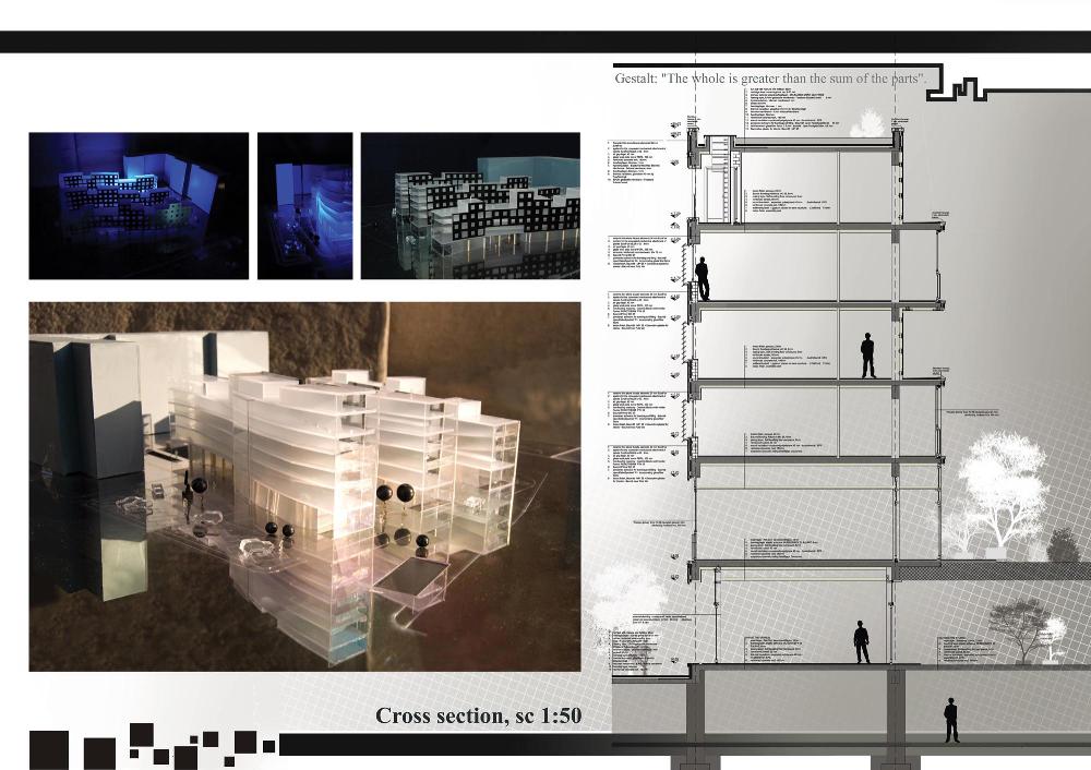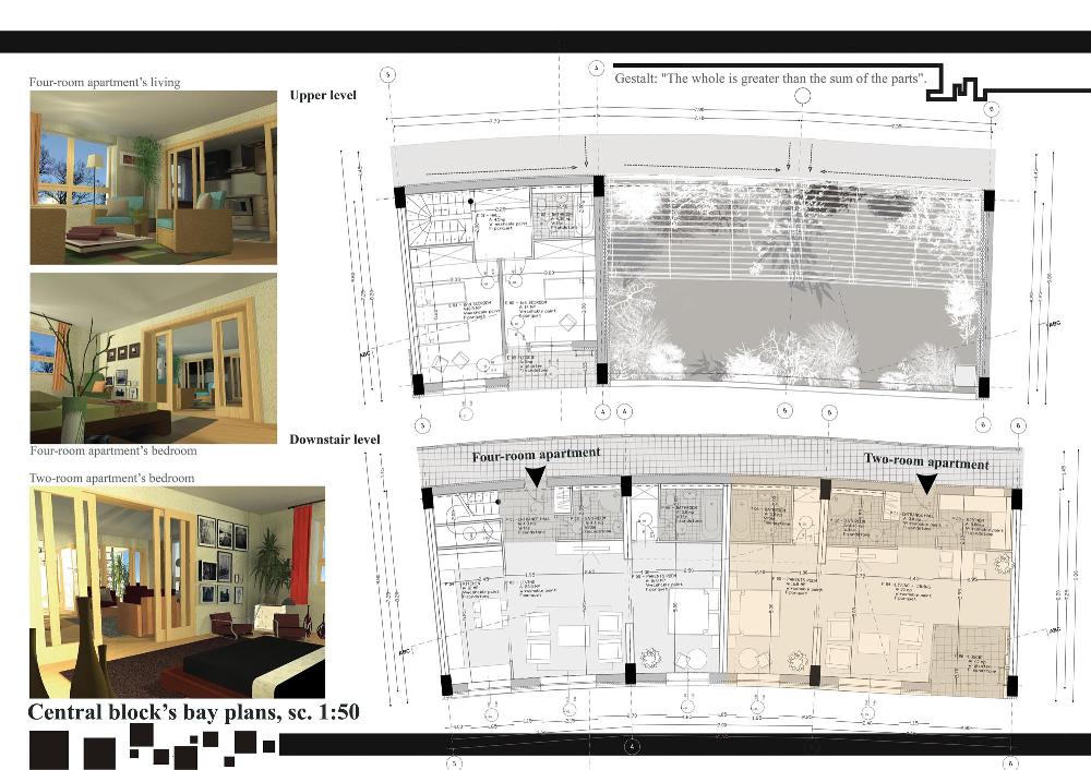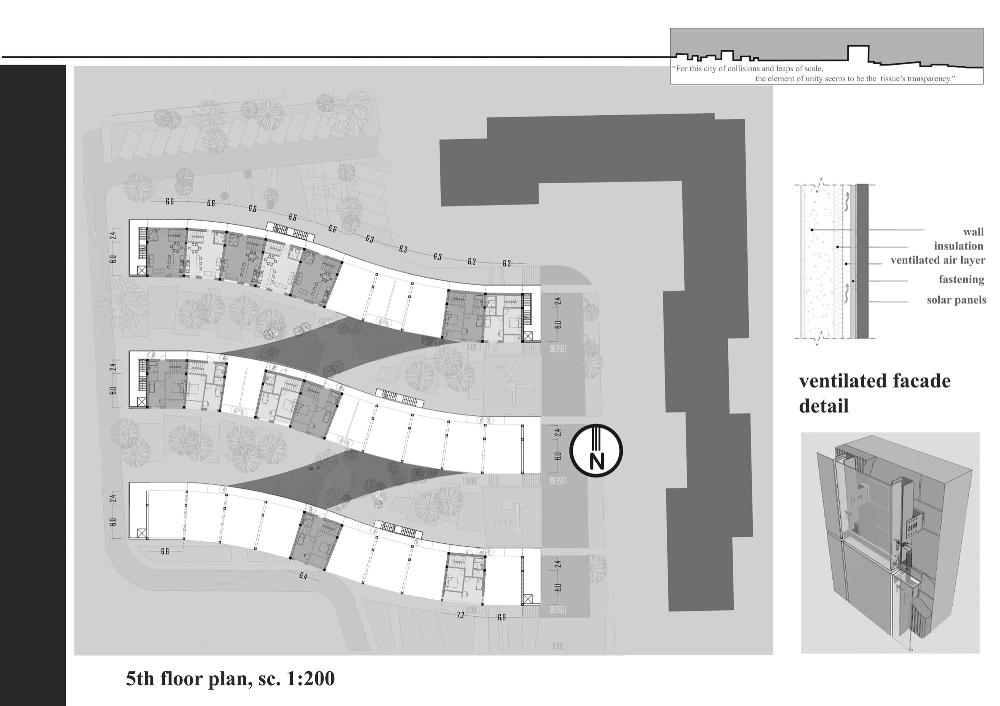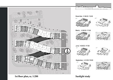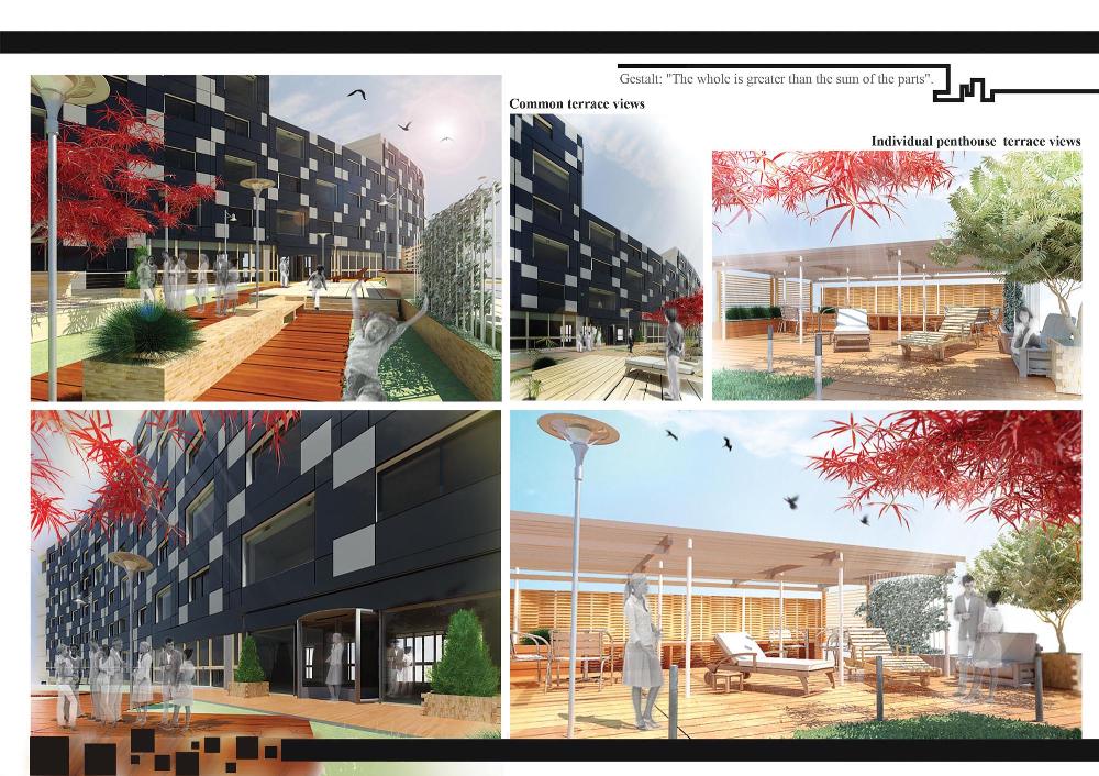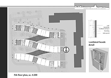 The study pleasure and logics have taken credits for ventilated facades, elements for capture and providing non-conventional energy, green terraces. It is obvious the students’ preoccupations for sustainable architecture, their technical approach: straightforward design, low energy consumption, laborious conception.