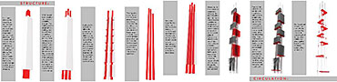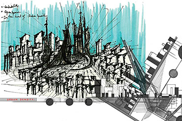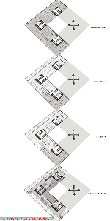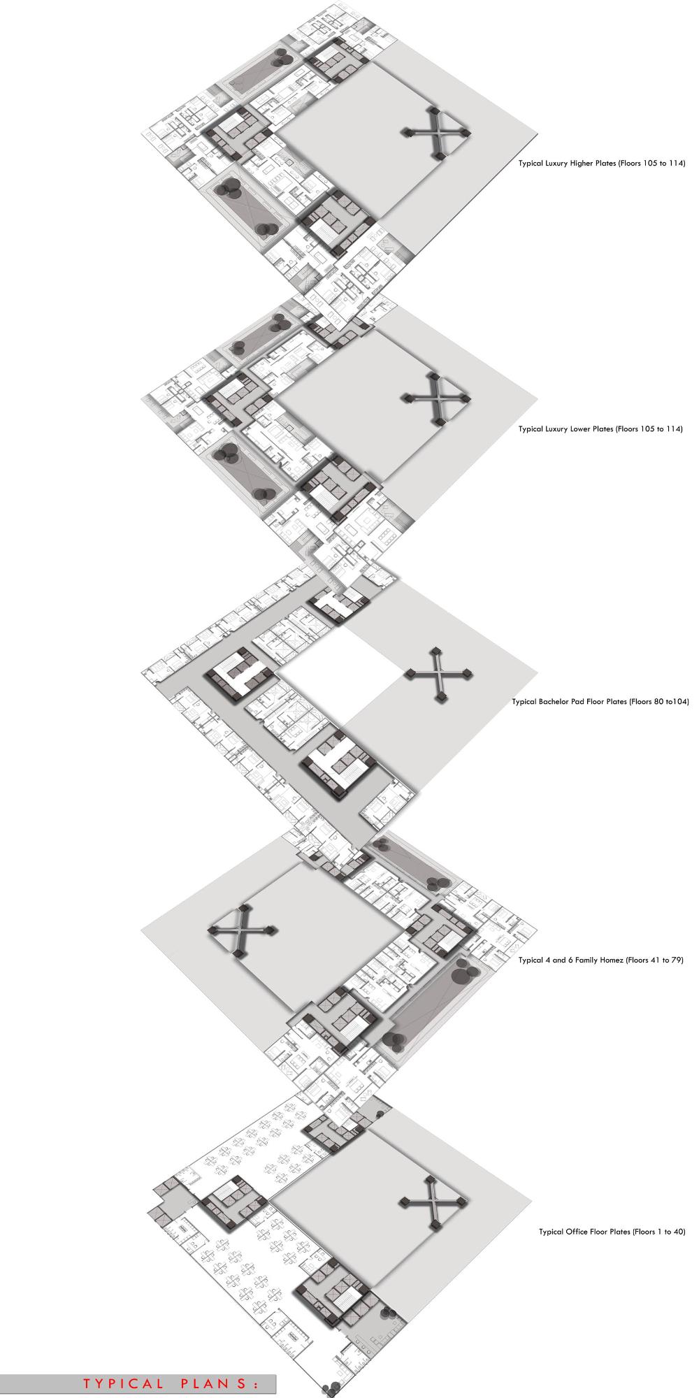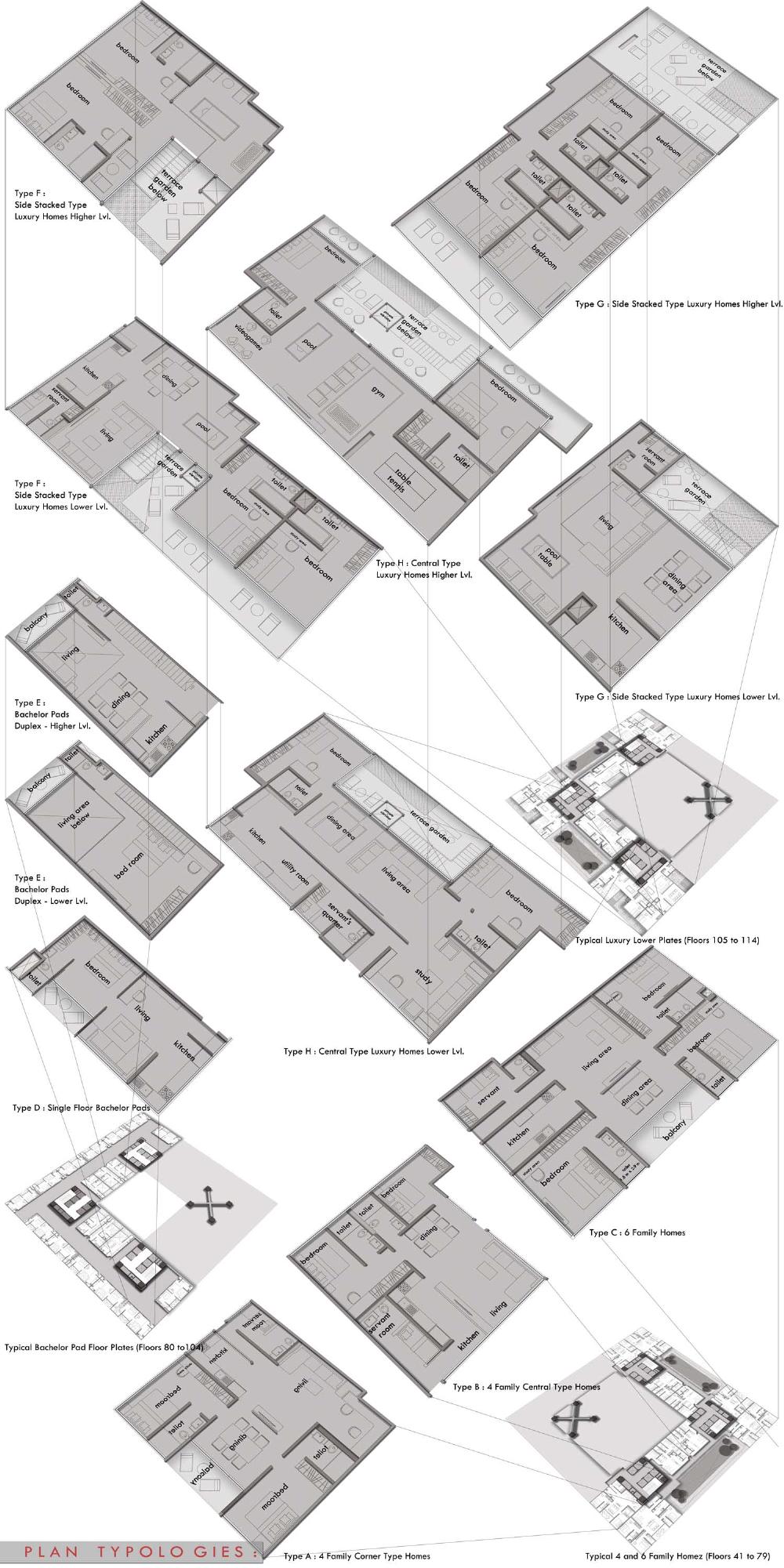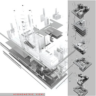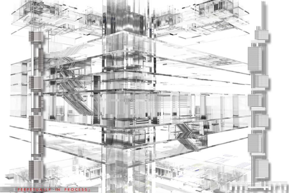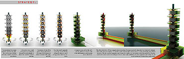 The Vertical City Part 2 Project 2010 Vineet Vora Kamla Raheja Vidyanidhi Institute Mumbai | India In the recent past, Mumbai and several other metropolises have seen unprecedented urban sprawl in a relatively short span of time. There is thus, an obvious shortage of space for accommodation in the city, in turn causing a collective usurping of open public spaces, recreational amenities etc. what results is the eventual death of the city Architects are reduced to being service providers and the profession reduce to nothing but a form making exercise for tireless monotonous residential buildings. The resulting lack of variety that has crept in simply contradicts the mixed program and spaces that form the essential, vital ingredient of the meaning of the word metropolis. Beyond the extreme population density, Mumbai faces further constrictions due to its coastline and the city continues to grow horizontally north words causing serious problems of commuting resulting inevitably in pollution, stress, reduced productivity and shortage of time.An optimistic outlook towards verticality is required. Vertical Architecture is accredited with a reduced footprint and has the capacity to release much required space. Can verticality be enriched far beyond the hermetic repetitive stacking of monotonous spaces? With a jump in scales, a new typology of vertical structures can be imagined, one which can serve as a city itself, a micro vertical city if you will. The problems of monotony can be dealt with a novel approach toward function and architectural programming. Such architecture can serve as a ground breaking solution to the dreadful effects of urban sprawl. 'The Vertical City' is a probe into this typology. It is an experiment, trying to combine the varied experiences of a city into one structure. A possible solution, for future metropolitan cities. Architecturally there arises a completely novel experience in such structures which can be exploited with program to further enrich the design. Such an approach shall legitimize the feasibility of mega structures and their potential in saving our cities. In his design project titled ‘The Vertical City’, Vineet Vora has aimed to present the idea of a mega structure housing a city. His process began with dreamlike sketches of an alternative future. Right from the beginning, the idea was to achieve a well detailed, positive and workable response. Considering the scale of such an architecture his approach has thoughout been a holistic one, where in contrary to a sequential design process in stages, a design that responsibly answered questions of structure, services, circulation, space planning and environmental issues was though of, from the concept stage. The Bandra Worli Sea Link (BWSL) in Mumbai city is a recent infrastructural development adding a new north-south corridor to the densely populated and congested Mumbai city. The vertical city being set along the BWSL near Mahim Bay (Mumbai) allows for the supportive infrastructural required by a mega structure, at the same time avoiding any added stress on the already inadequate road system of the mainland city. The challenge in planning a structure of this scale is enormous, and he has successfully been able to break down the scale with his architectural articulation. He has been able to reinvent the tall structure typology with a very simple yet unique and ground breaking architectural approach.Vineet Vora is an excellent student with exceptional imagination. He has an analytical approach which enables him to develop thoughtful and thought provoking architecture as I have experienced while guiding him. ‘The Vertical City’ is an exemplar of this analytical approach. Tutor(s) Prof. Shakti Parmar